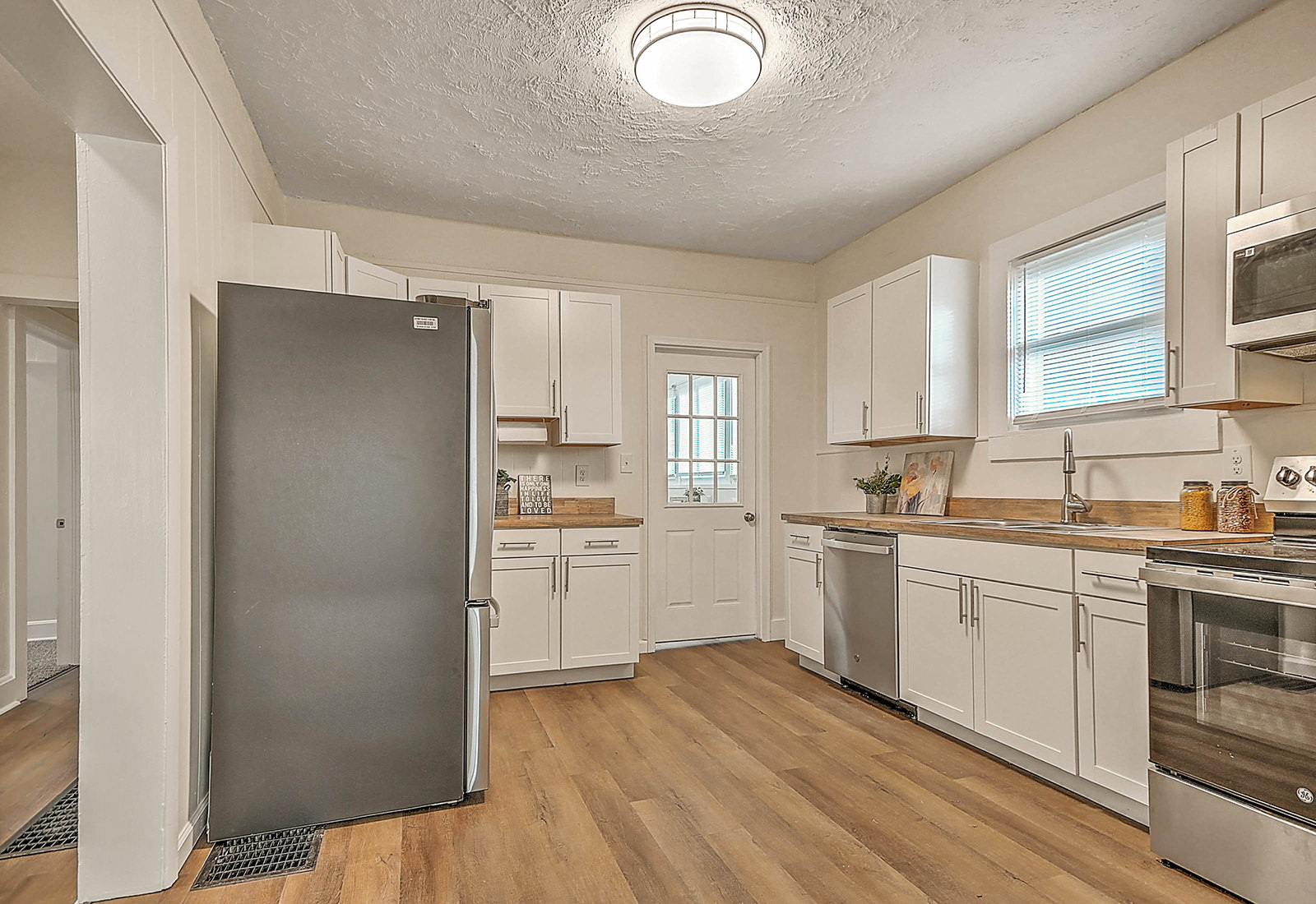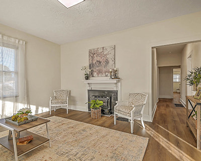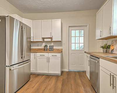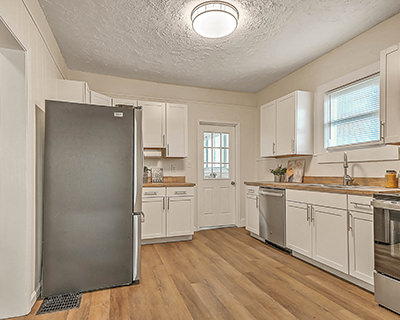 Renovated bungalow on a corner lot! This beautifully renovated home provides the curb appeal of a classic 1940s bungalow with an updated interior featuring all the modern conveniences you could ask for. Sitting on a corner lot, the home welcomes you with a wide, covered front porch perfect for relaxing evenings and friendly conversations. Inside, you'll find high ceilings and new flooring and lighting throughout, creating a bright, airy feel. The living room and dining room offer comfortable spaces for gatherings and everyday relaxation. The fully updated kitchen is a true highlight, featuring brand-new stainless-steel appliances, stylish cabinetry and hardware, and butcher block countertops. The home includes three cozy bedrooms with new carpet, and a renovated full bath with a new vanity, lighting, fixtures, and more. Outside, the fenced yard and patio offer space for pets, play, or gardening, while the shed is ideal for storing tools and lawn equipment. A separate covered carport provides convenient parking, and the basement workshop gives hobbyists and DIYers room to work. With a durable metal roof and views of the surrounding mountains, this move-in-ready home offers both peace of mind and scenic beauty. The home is conveniently located near elementary, middle, and high schools, and downtown Johnson City is only 5 minutes away. ETSU, the VA hospital, and the everyday amenities of State of Franklin Road are all within a short, easy drive as well. Set up a private showing today!