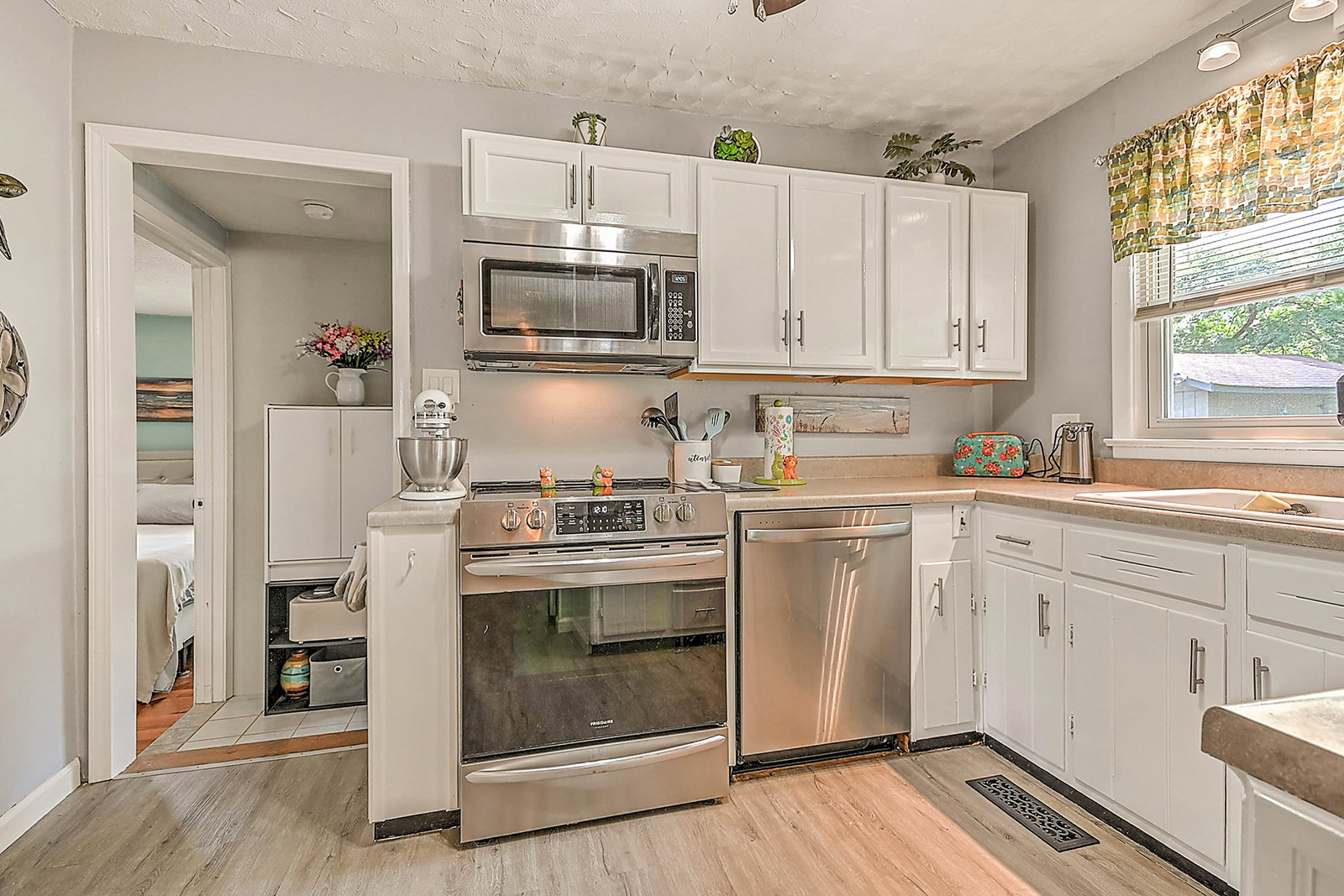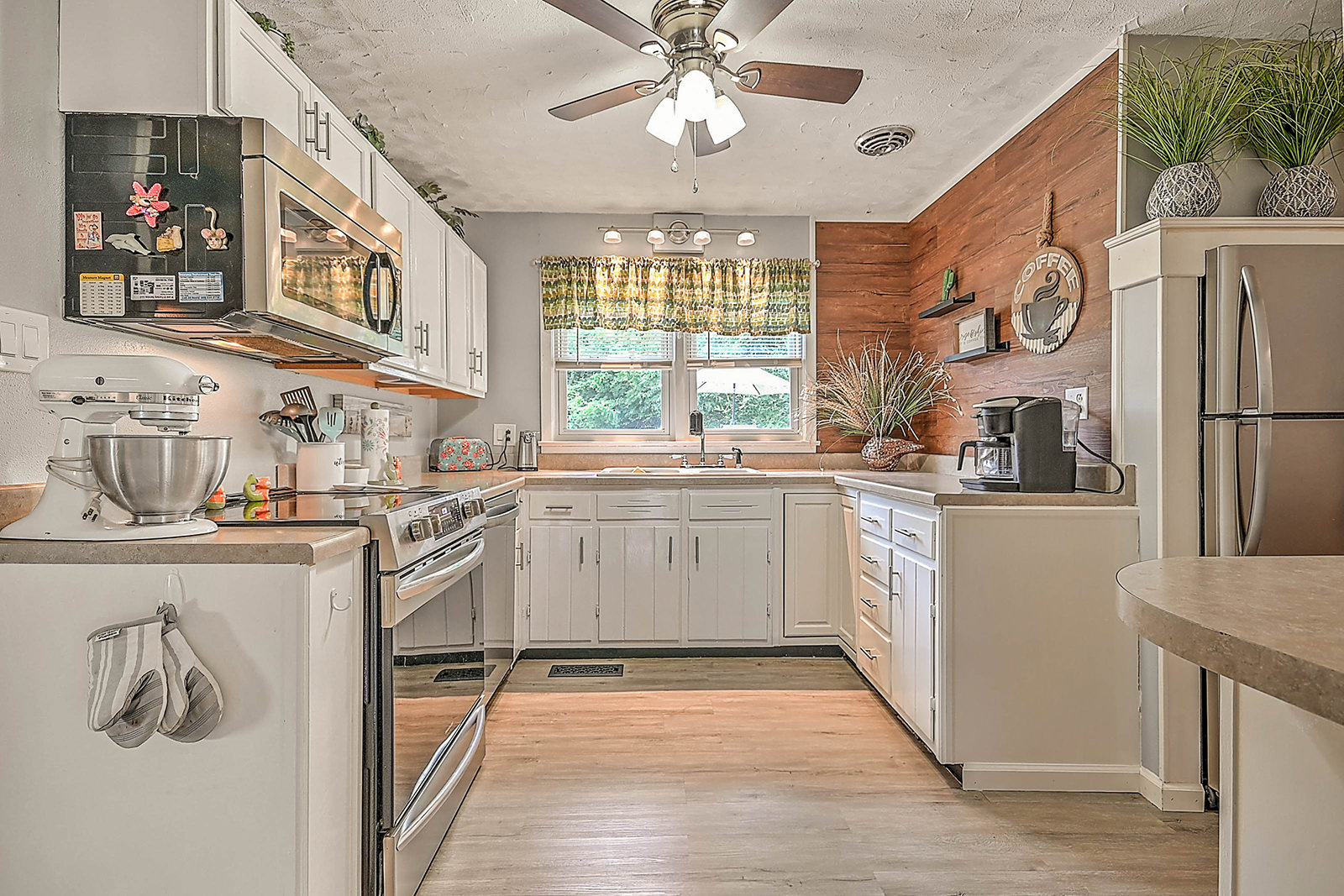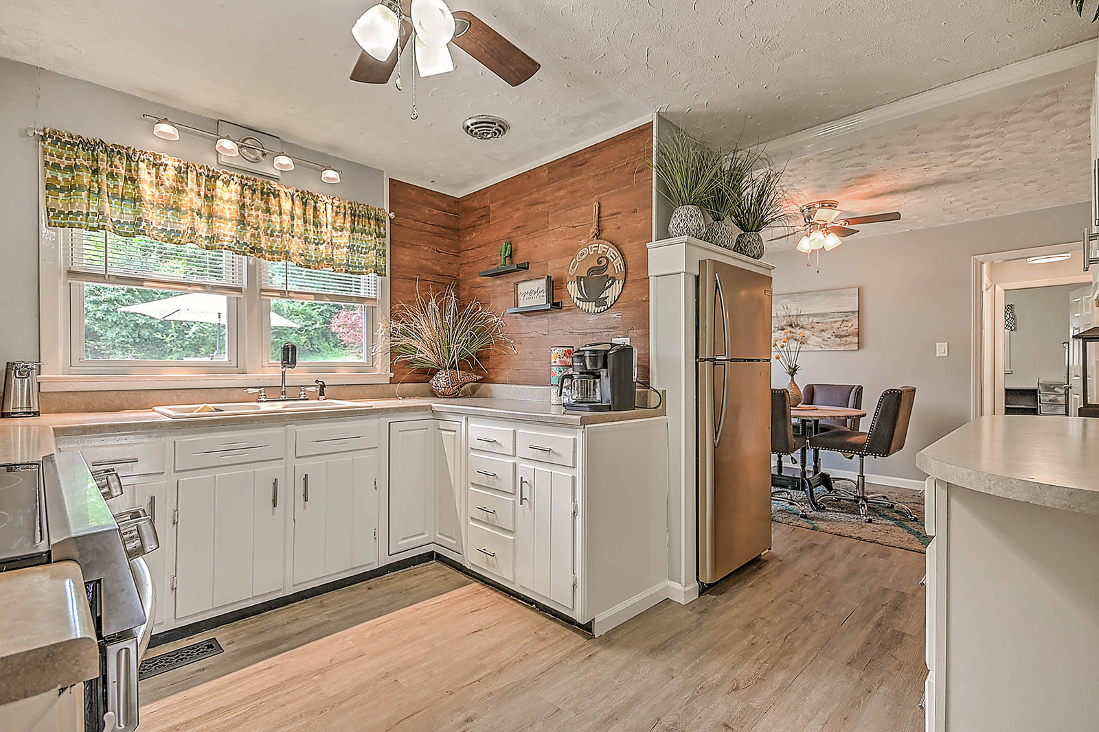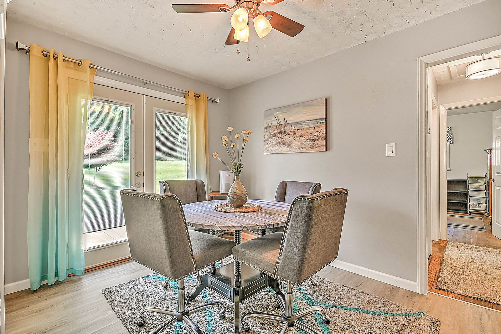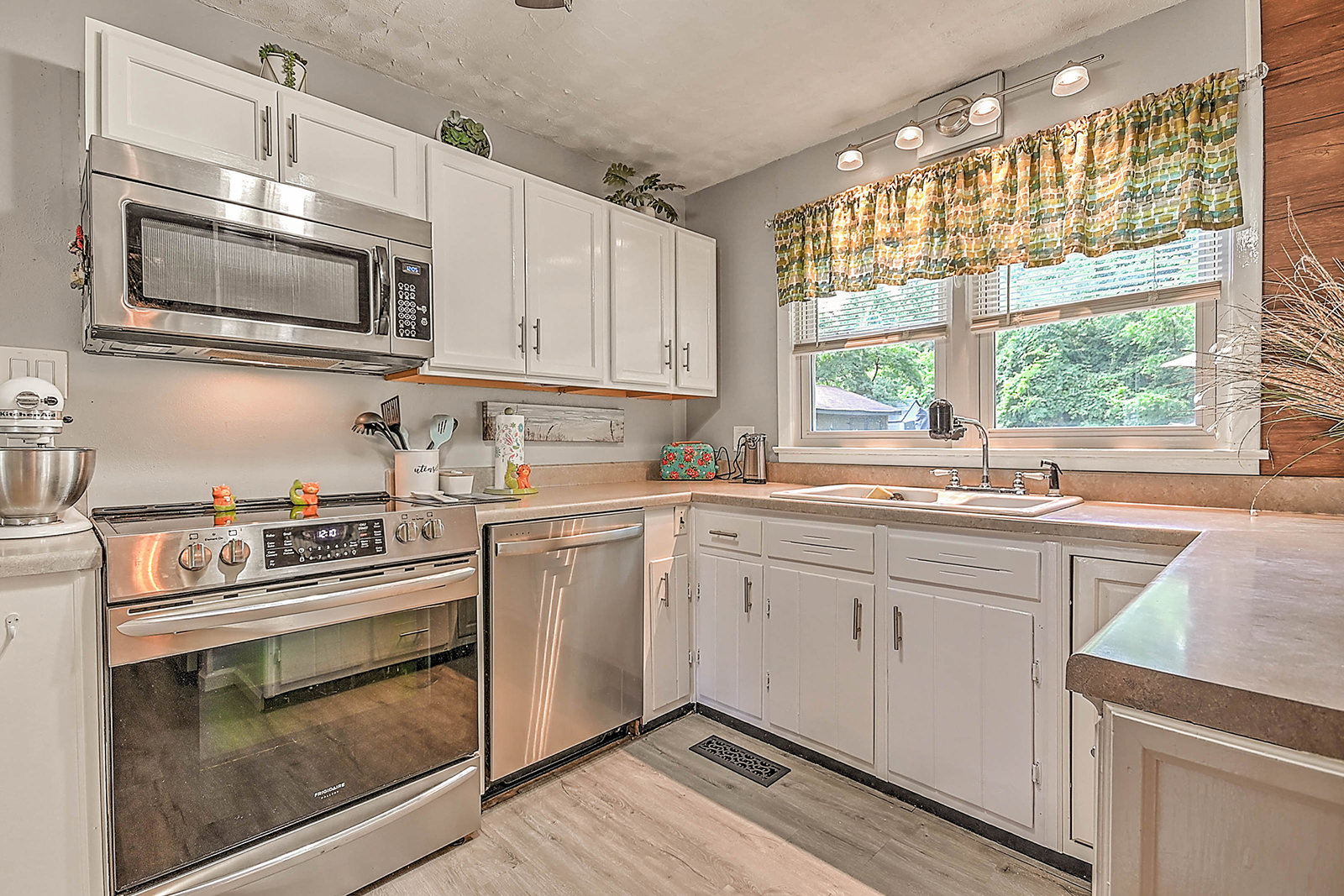 One-level living in an excellent location! This three-bed, one-bath ranch sits on a dead-end road in a peaceful neighborhood. Inside this well-maintained home, the spacious living room features beautiful hardwood flooring and a large picture window that bathes the room in natural lighting. An updated dining area provides the ideal space to enjoy meals cooked in the modern farmhouse-style kitchen, which includes newer flooring, cabinets, countertops, and stainless-steel appliances. The primary bedroom is adjacent to the laundry room for added convenience. You'll find several thoughtful updates throughout the home, including some new fixtures, ceiling fans, a newer heat pump, and a stylish new front door and screen door. Step outside to enjoy a serene backyard retreat with a patio for relaxing or entertaining. A workshop and separate storage building offer plenty of space for hobbies, tools, and lawn equipment, while the easy-to-maintain yard makes upkeep a breeze. This home is located in a wonderful area of the city, just minutes from downtown Bristol TN/VA, Steele Creek Park, Paramount Bristol, the Birthplace of Country Music Museum, and much more. Whether you're a first-time buyer, downsizer, or investor, this cozy home is a rare find: quiet, convenient, and with lots of updates. Don't miss the chance to make it yours. Set up a showing today!