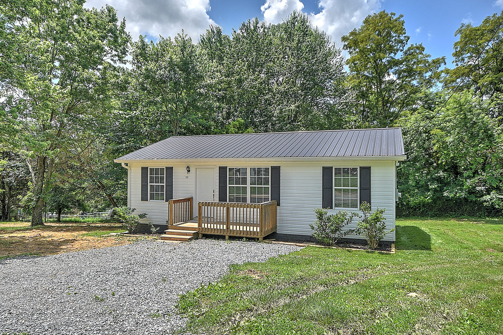 *This property includes a one-year home warranty!* Move-in ready countryside cottage! Nestled on a spacious and private corner lot just minutes from Historic Downtown Jonesborough, this beautifully renovated, affordable home is ideal for the first-time buyer, downsizer, or anyone looking for an enlarged peaceful retreat. Inside, the bright, open layout features new hardwood-style flooring that adds warmth to the main living areas. The updated kitchen is a true standout, featuring sleek new cabinets, new countertops, stainless-steel appliances, and stylish fixtures and lighting—everything you need to cook, entertain, and enjoy daily life with ease. Take in tranquil views of the wooded back yard from the kitchen window, or step outside through the back door for a breath of fresh country air. Three bedrooms with new carpet and an immaculate full bath with a laundry area and new vanity, lighting, and shower/tub combo add to the comfort and convenience of this lovely home. A long-lasting metal roof and eye-catching curb appeal round out the home's valuable features, as well as its convenient location near parks, schools, shopping, dining, and more. Don't miss your chance to make this move-in-ready gem your new home; set up a showing today!
