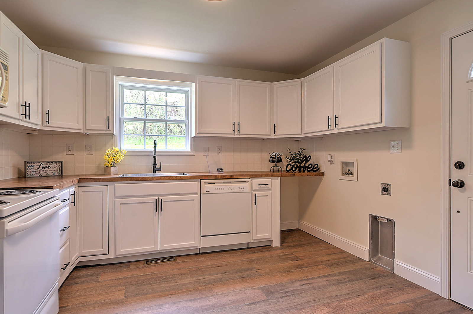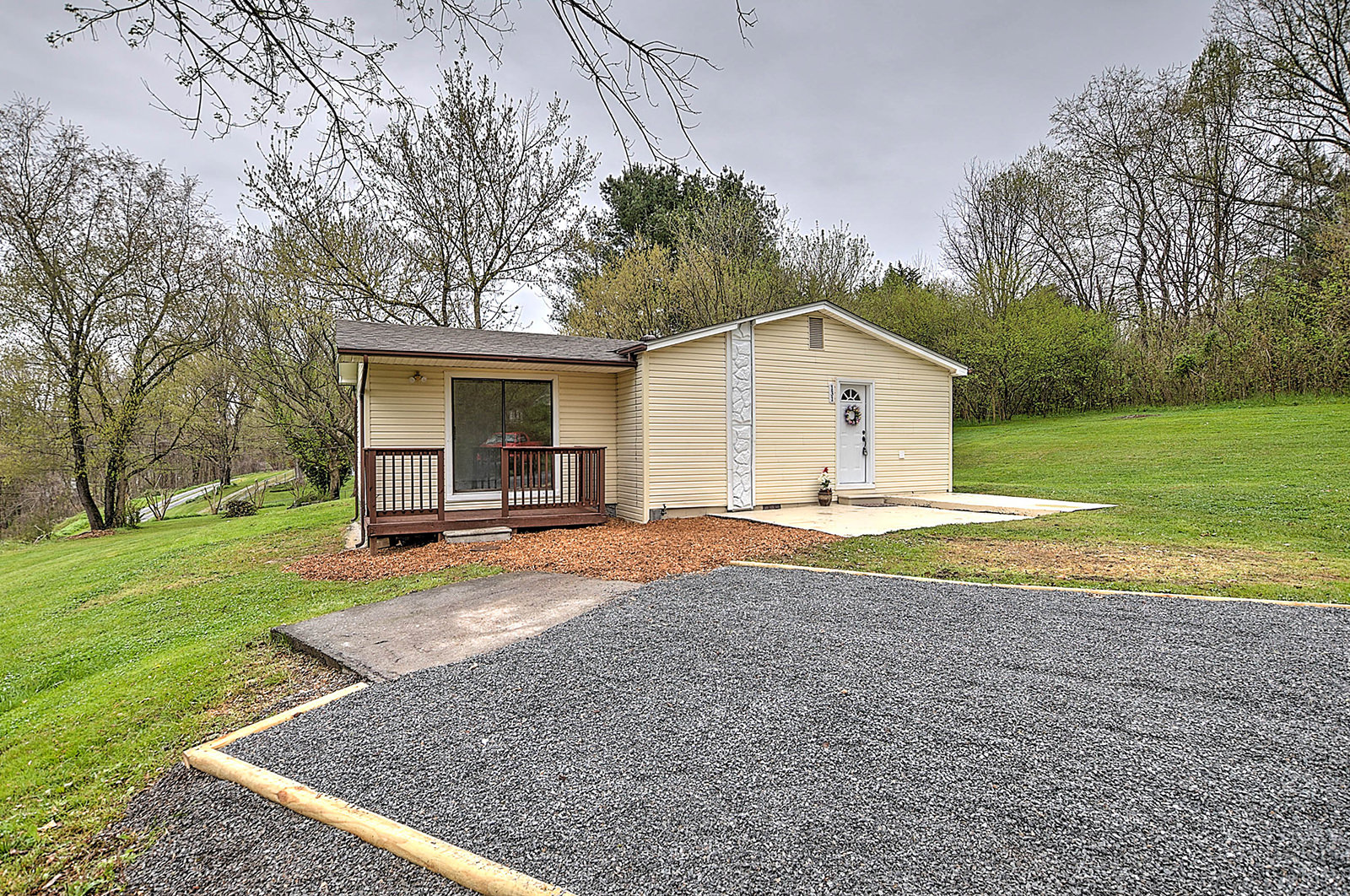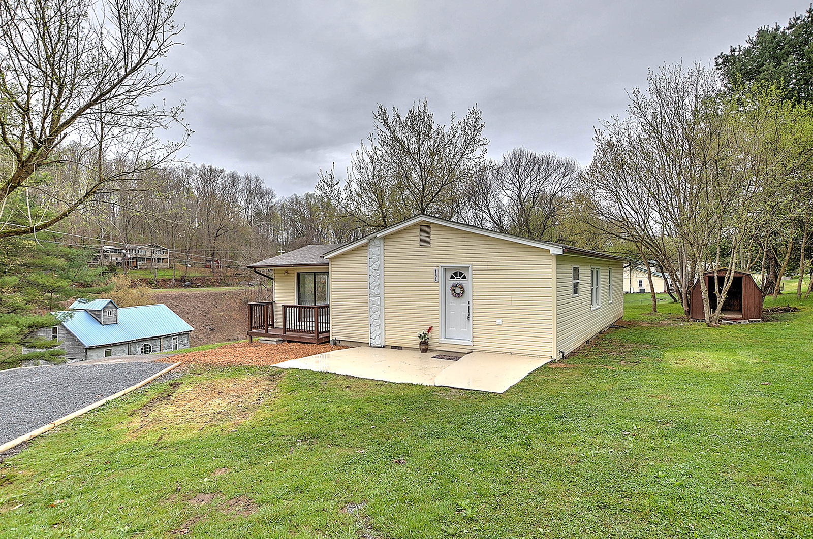 A brilliant buy in a lovely location! Beautifully remodeled, this hillside home is in a fantastic country setting that's convenient to both Johnson City and Elizabethton. The spacious yard overlooks Buffalo Creek and offers plenty of space for parking and outdoor enjoyment, and there's even a shed to use for storage or a workshop. The entire home has new flooring throughout, including fresh new carpet in all three bedrooms. The completely updated kitchen features all-new appliances, cabinets, fixtures, and gorgeous butcher block countertops. Two local universities are nearby–ETSU is just a 10-minute drive away, and Milligan is in walking distance! In 10 minutes or less, you can be mountain biking at Tannery Knobs, exploring Sycamore Shoals State Park, or playing 18 holes at the Elizabethton Golf Course. This home has been professionally remodeled by AFH Properties.