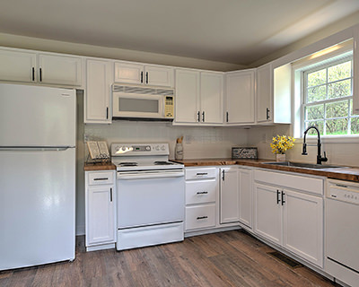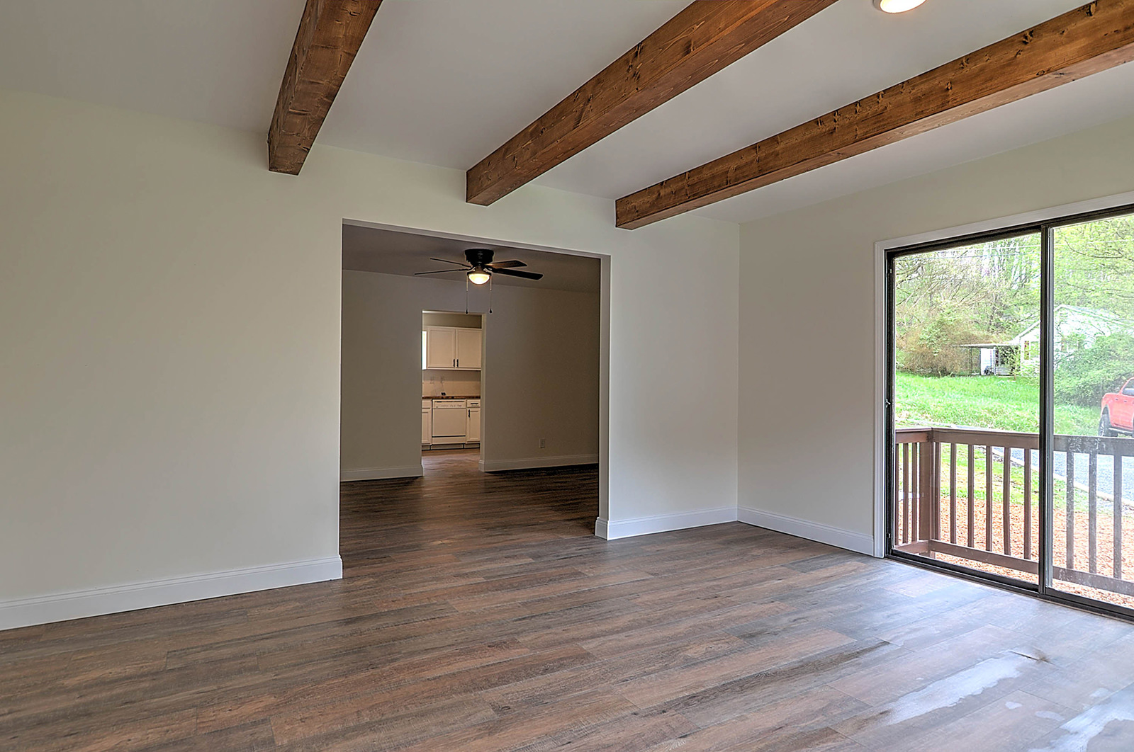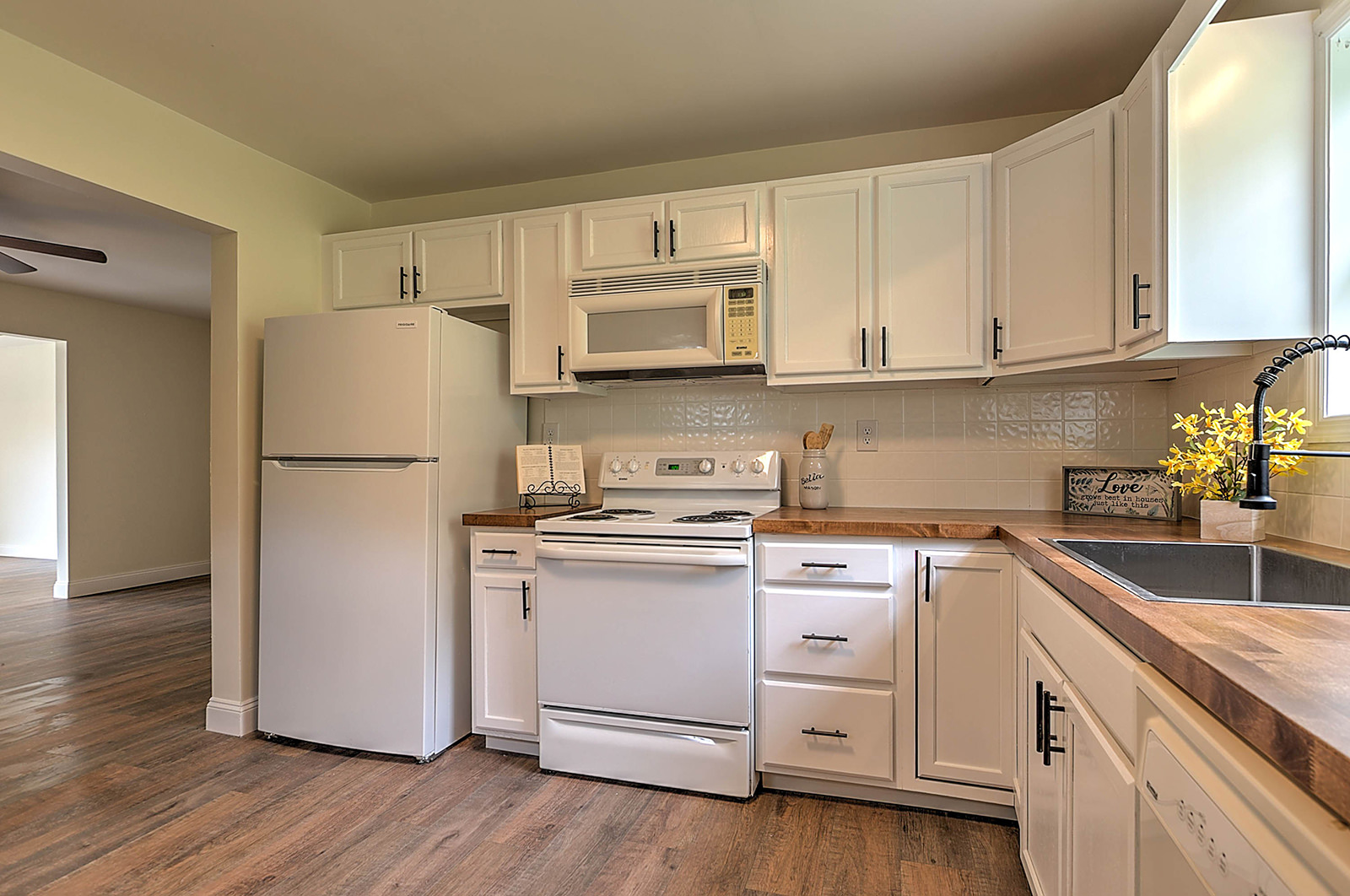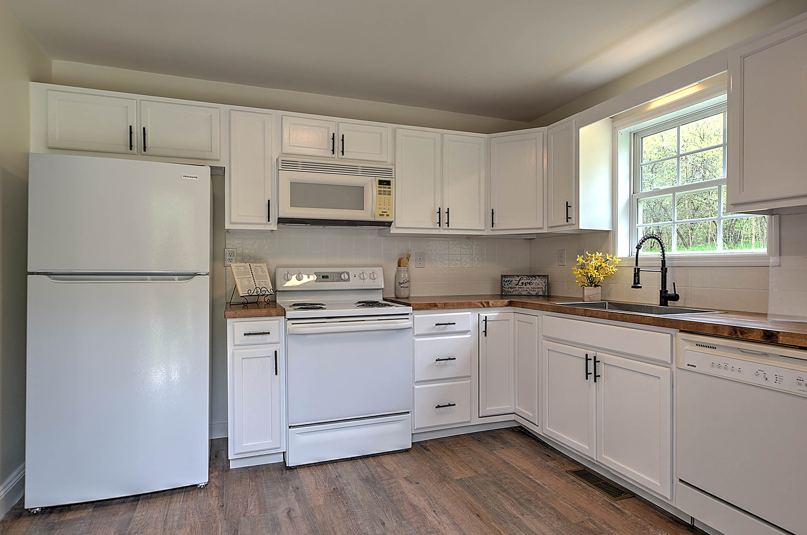 A brilliant buy in a lovely location! Beautifully remodeled, this hillside home is in a fantastic country setting that's convenient to both Johnson City and Elizabethton. The spacious yard overlooks Buffalo Creek and offers plenty of space for parking and outdoor enjoyment, and there's even a shed to use for storage or a workshop. The entire home has new flooring throughout, including fresh new carpet in all three bedrooms. The completely updated kitchen features all-new appliances, cabinets, fixtures, and gorgeous butcher block countertops. Two local universities are nearby–ETSU is just a 10-minute drive away, and Milligan is in walking distance! In 10 minutes or less, you can be mountain biking at Tannery Knobs, exploring Sycamore Shoals State Park, or playing 18 holes at the Elizabethton Golf Course. This home has been professionally remodeled by AFH Properties.