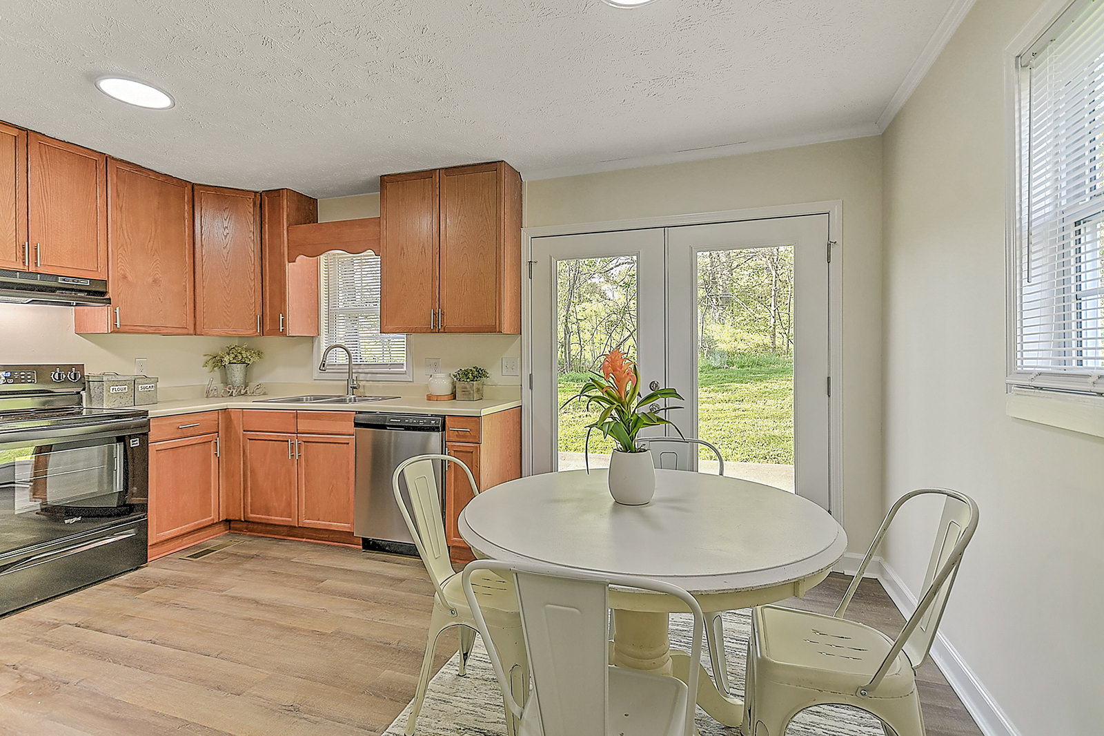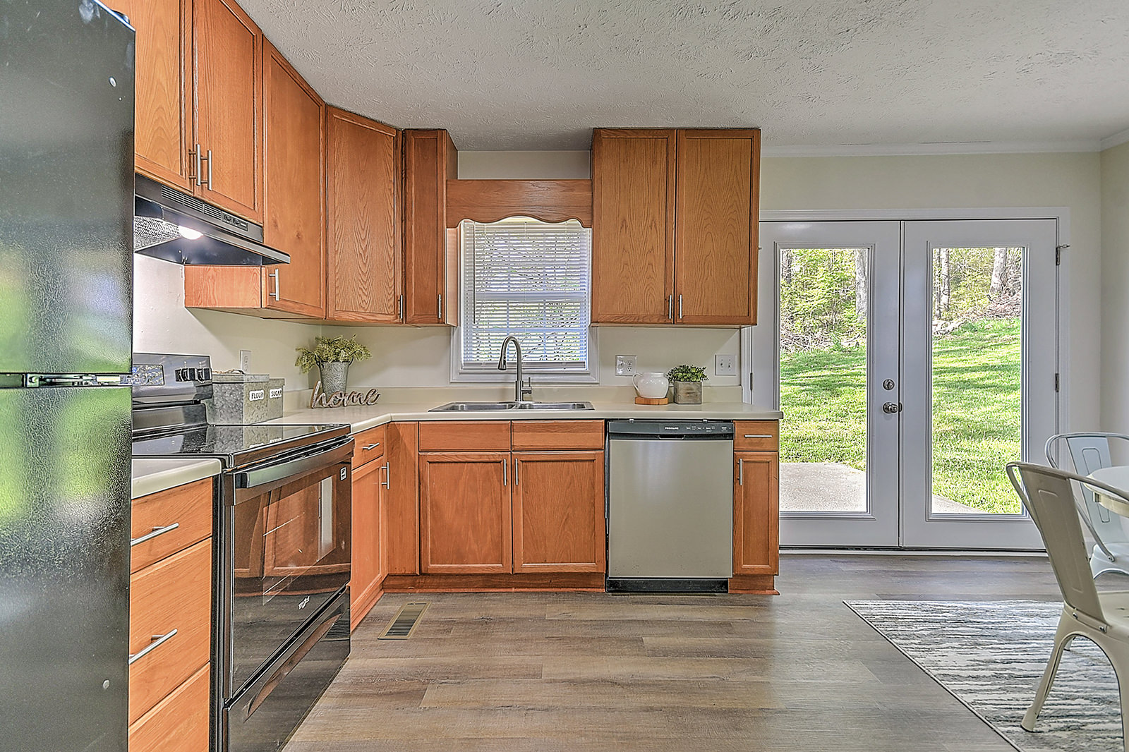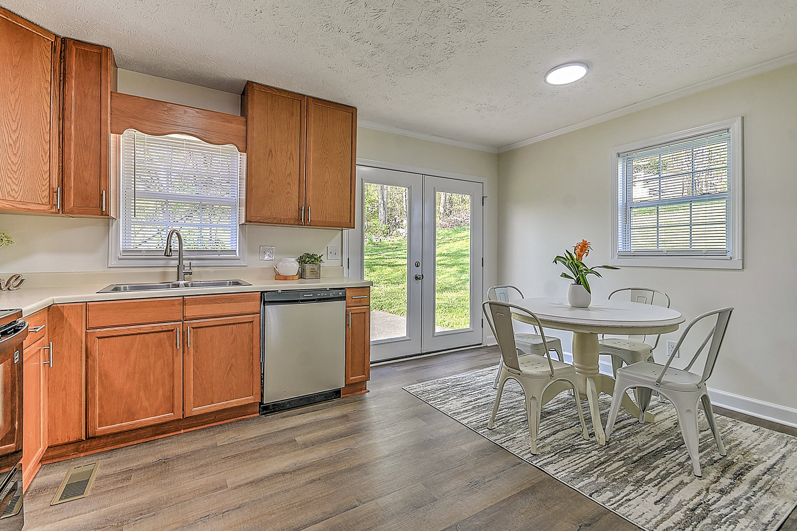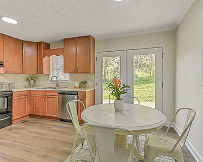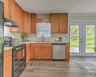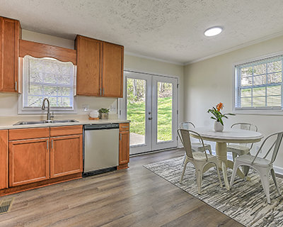 Mountain views, modern comfort! This beautifully renovated split-foyer gem is nestled among mature trees with stunning mountain views. Conveniently located off Highway 107, the home is also just minutes from the sparkling rapids and world-class fishing of the Nolichucky River. The brick and vinyl exterior offers timeless curb appeal, while the professionally renovated interior delivers style and comfort. The charming living room leads to the completely updated eat-in kitchen, featuring new appliances, cabinetry, countertops, lighting, and fixtures. French doors open to the peaceful backyard oasis. The main floor also features three freshly carpeted bedrooms and a fully updated shared bath. The finished walkout basement with new drywall provides flexibility with a cozy sitting area, a fourth bedroom featuring hardwood-style flooring, an updated full bath, and a laundry room. Additional highlights of this beautiful home include new lighting, flooring, and paint throughout, a long-lasting metal roof for peace of mind, a drive-under garage for convenient parking, and a separate storage building. The home's location offers easy access to Highway 107 and nearby outdoor adventures. Whether you're relaxing indoors or exploring the natural beauty right outside your door, this move-in-ready home offers the best of both worlds. Set up a showing today!