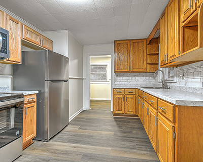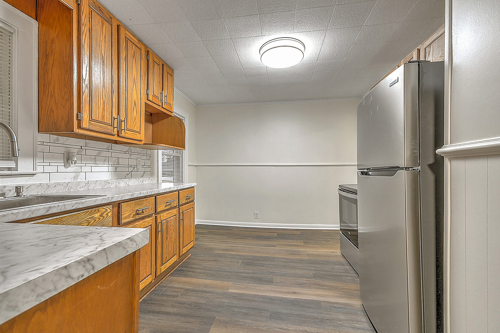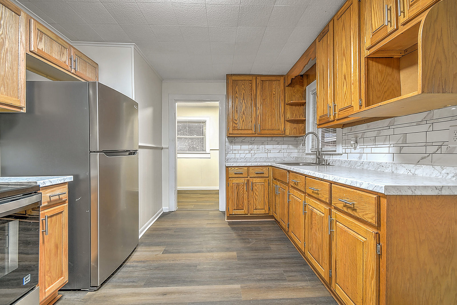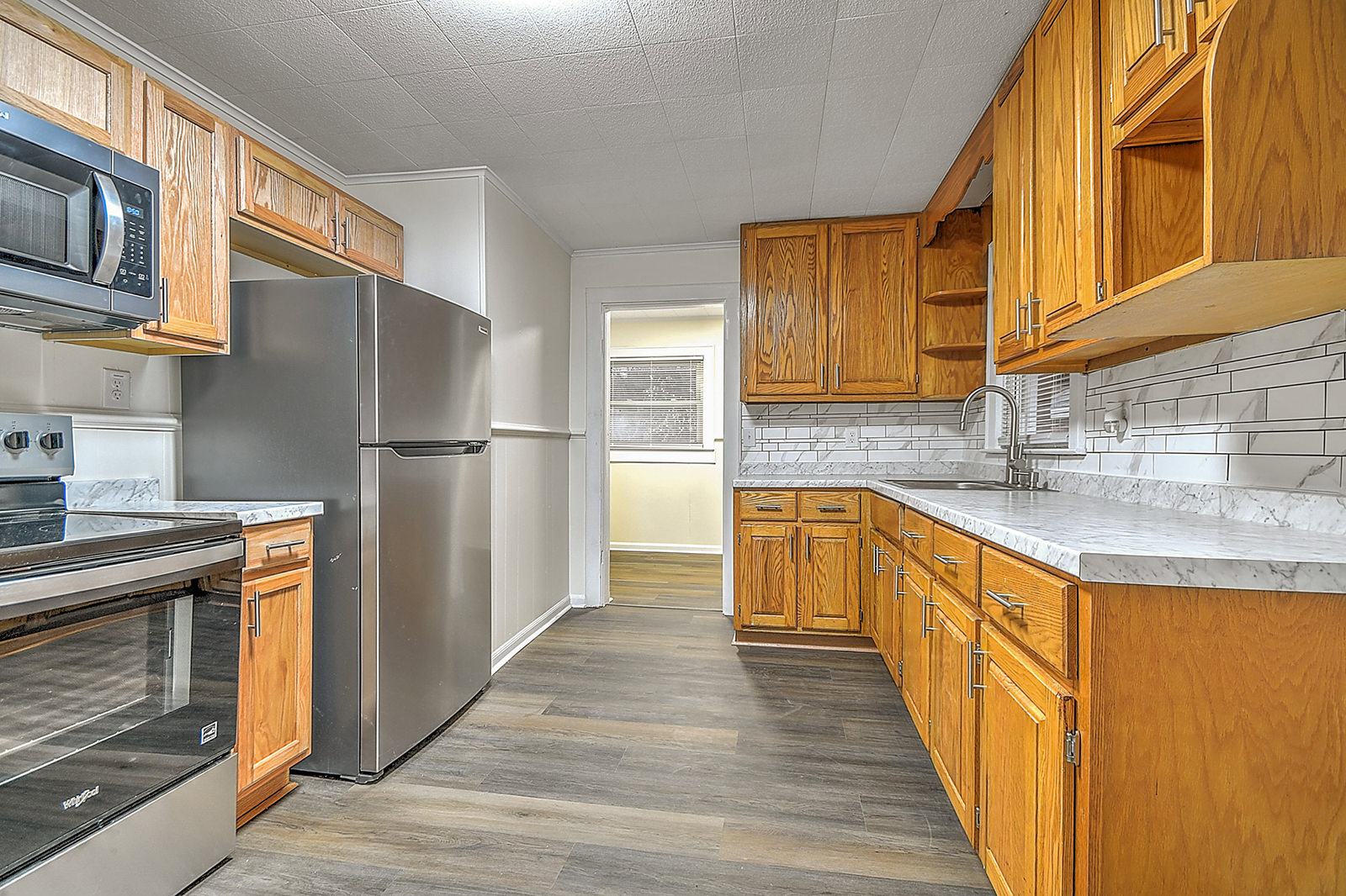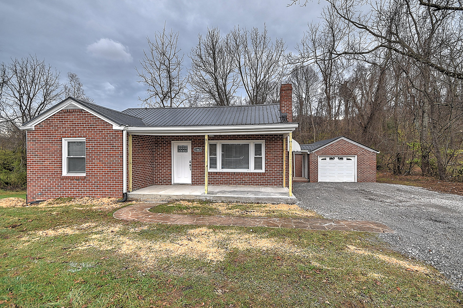 Renovated ranch on a large lot! Affordable and beautifully renovated, this charming brick ranch sits on a spacious lot and offers comfort, style, and convenience. A welcoming covered front porch invites you inside, where you'll find fresh updates and thoughtful touches throughout. Step into the lovely living room, featuring abundant natural light, a cozy fireplace, and a graceful arched doorway leading to the hall. The fully renovated kitchen shines with new stainless-steel appliances, new cabinets and countertops, and a stylish new backsplash, ready for all your cooking and entertaining needs. With three comfortable bedrooms and a fully updated bath boasting new fixtures, a new vanity, and more, this home is truly move-in ready. A convenient mudroom with laundry hookups adds extra functionality, while new flooring throughout enhances the clean, modern feel. Enjoy outdoor relaxation on the porch or covered side patio, and take advantage of the one-car garage and a large unfinished walkout basement that provides incredible storage or future expansion potential. Located just 12 minutes from Milligan University, the home is convenient to both Elizabethton and Johnson City. Whether you're into hiking, mountain biking, picnicking, camping, or boating, you'll find yourself at the doorstep of adventure. A short drive will also take you to the historic Covered Bridge Park, a charming piece of local history waiting to be explored. This renovated brick ranch offers affordability without compromise. Set up a showing today and come see the possibilities!