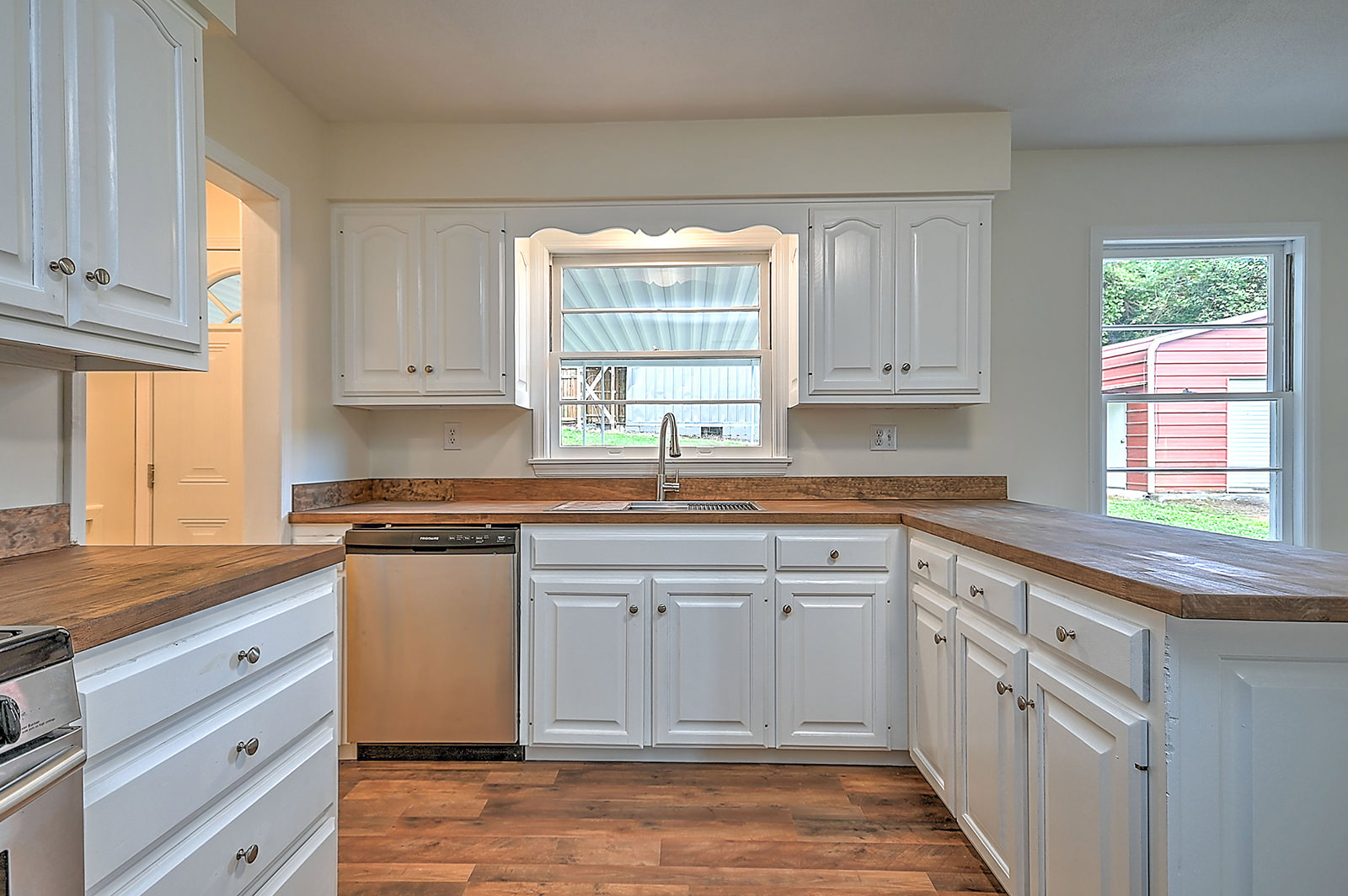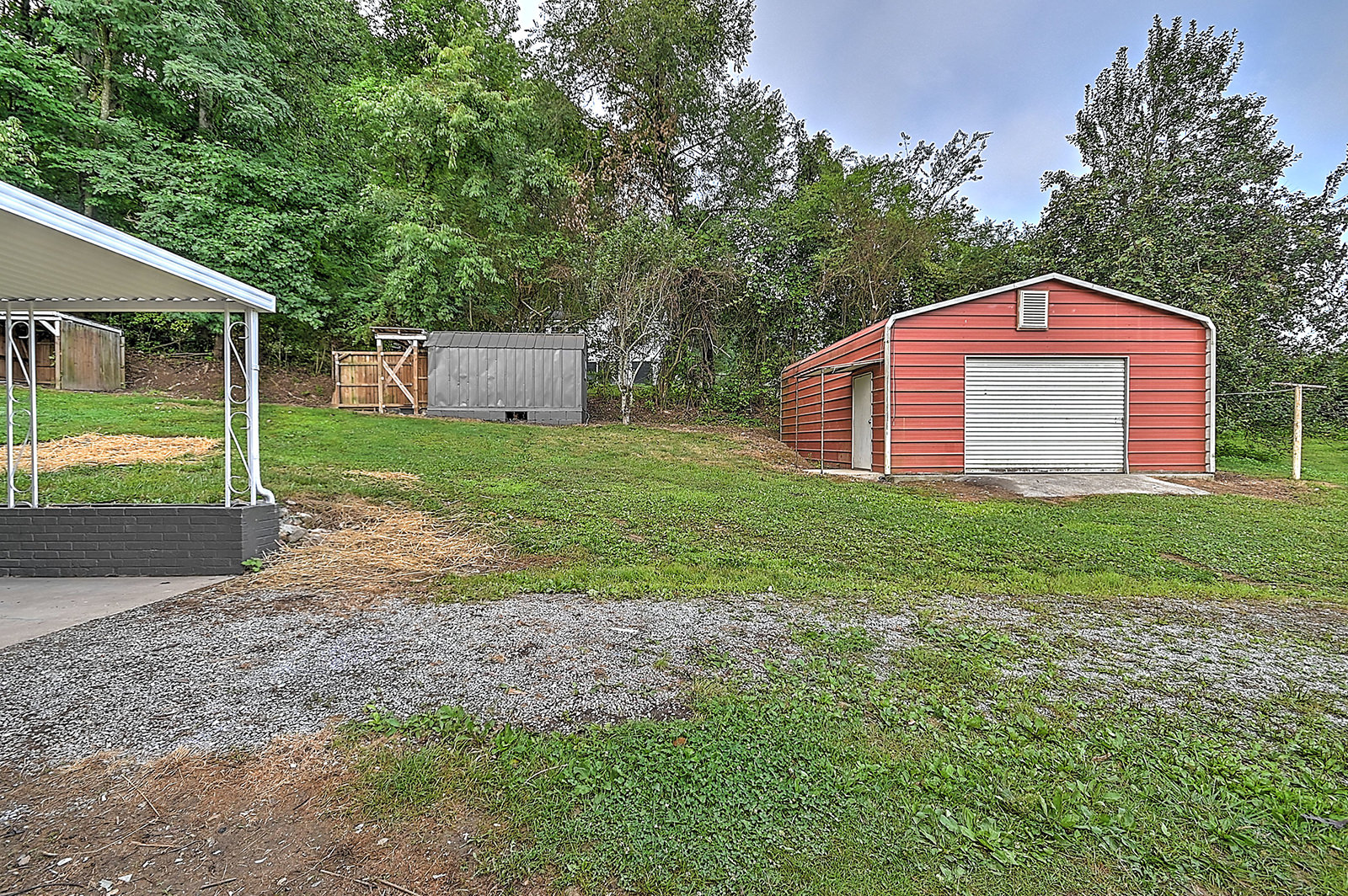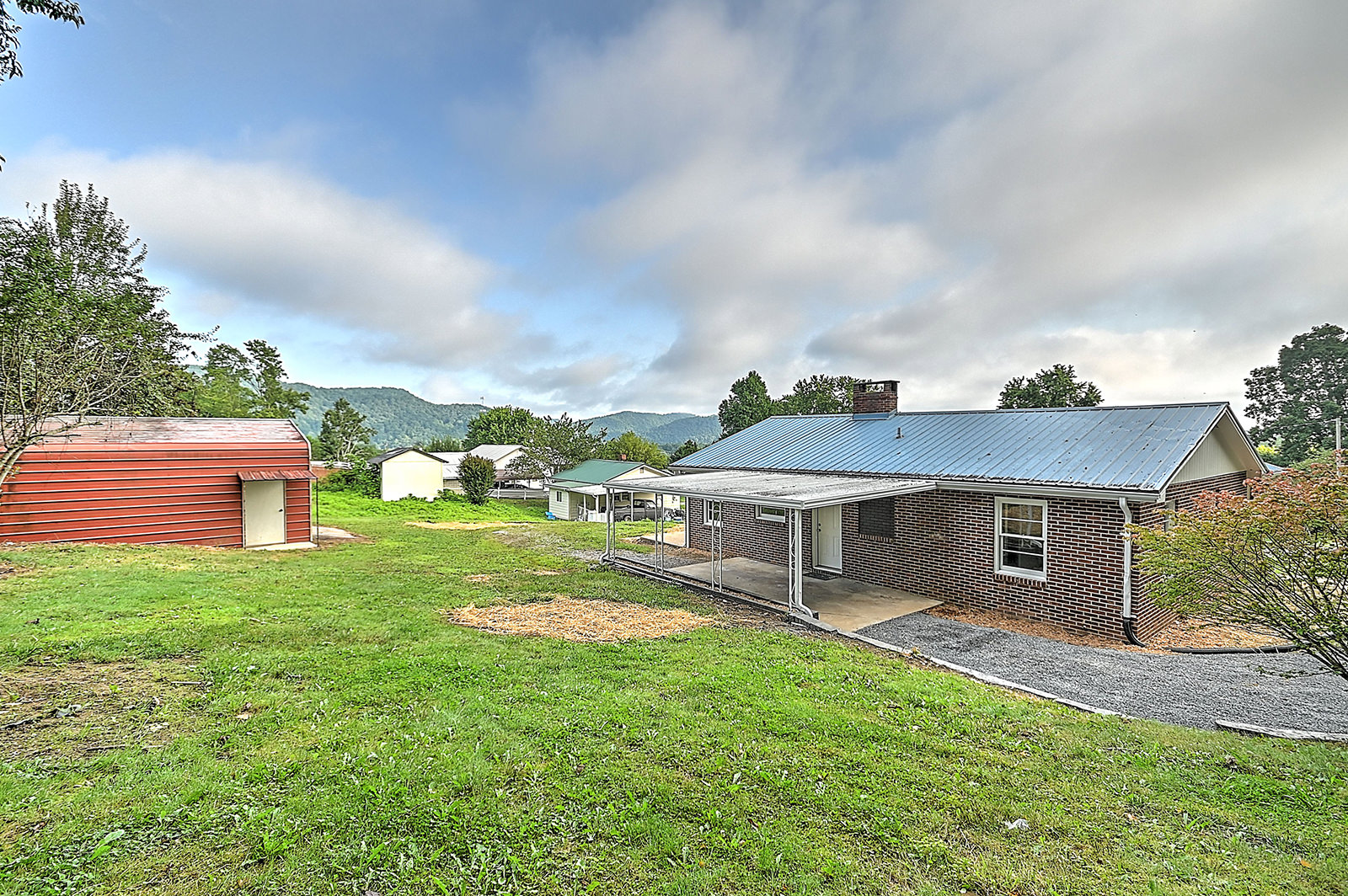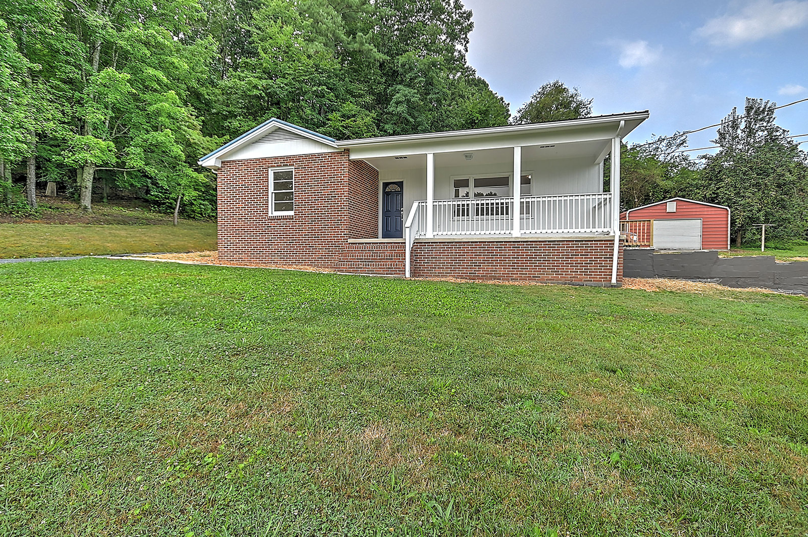 A move-in ready mountain retreat! This professionally renovated brick raised ranch is nestled at the base of Unaka Mountain near the Nolichucky River, conveniently located just minutes from schools, hospitals, shopping, restaurants, and more. Offering lovely mountain views, this home provides a serene setting on 0.78 acres. The spacious, covered front porch and side patio provide comfortable spots for relaxing and enjoying the country breezes. At the back of the home is a covered carport as well as a large yard barn that serves as an excellent workshop or storage space. The warm and inviting living room features a unique fireplace and stylish new hardwood-style flooring that extends into the kitchen. The eat-in kitchen boasts several modern amenities, including new butcher block countertops, new cabinets, new fixtures and lighting, and new stainless-steel appliances. The full bath has also been beautifully renovated, featuring new flooring, fixtures, lighting, vanities, and a tub/shower combination. With a total of four bedrooms, this home ensures ample space for everyone. Each bedroom has been updated with new carpet, with three bedrooms conveniently located upstairs and one downstairs, offering privacy and flexibility. The basement also features a private half-bath, a versatile storage and/or workshop space, and a utility shower for added convenience. A large, finished living room/den area in the basement with nice new flooring provides extra room for relaxation and entertainment. Don't miss the opportunity to call this remarkably renovated ranch your new home—set up a tour today!