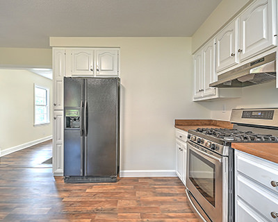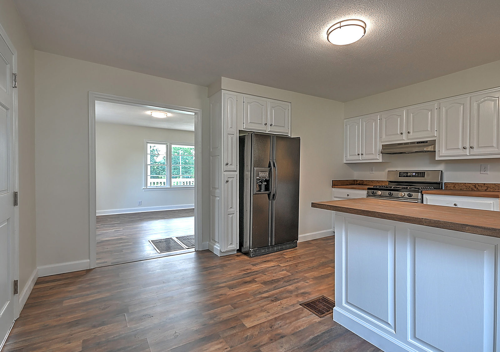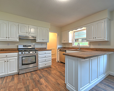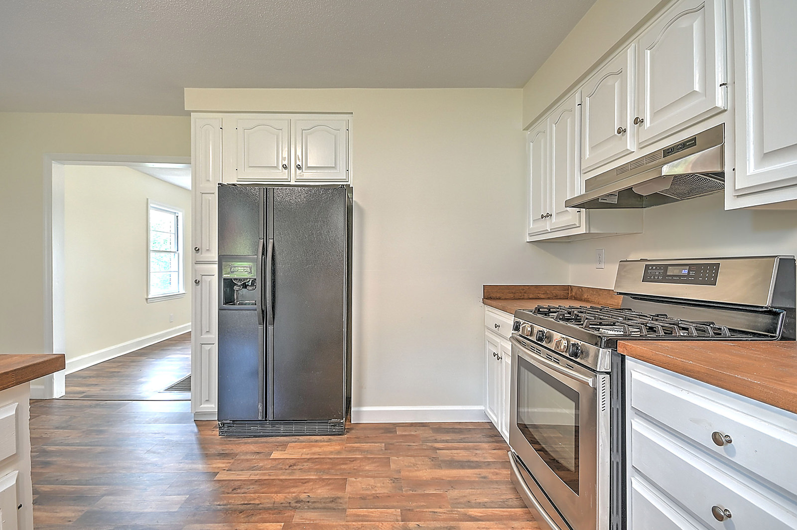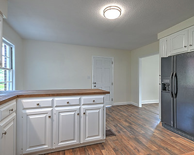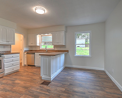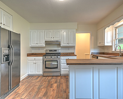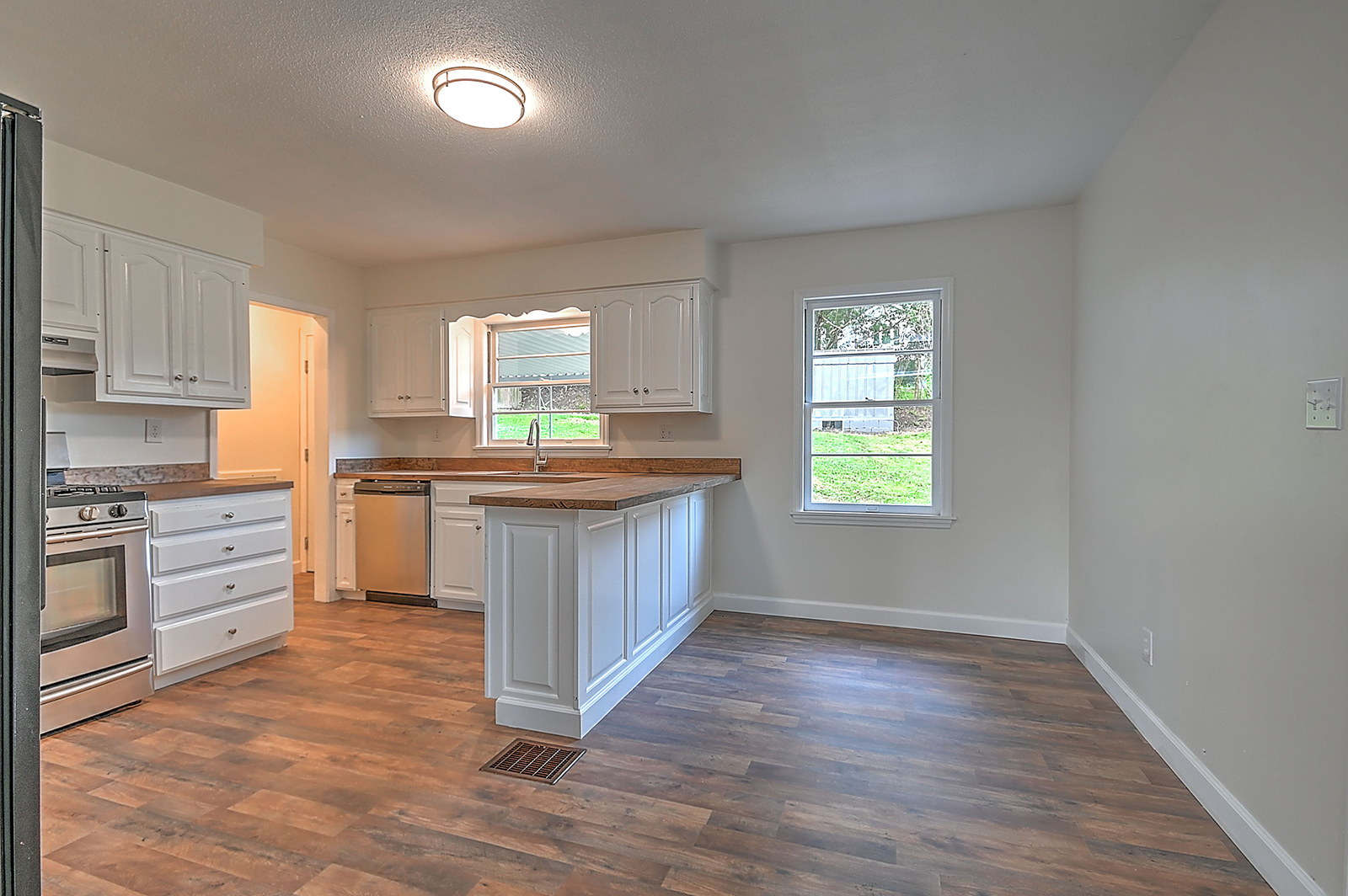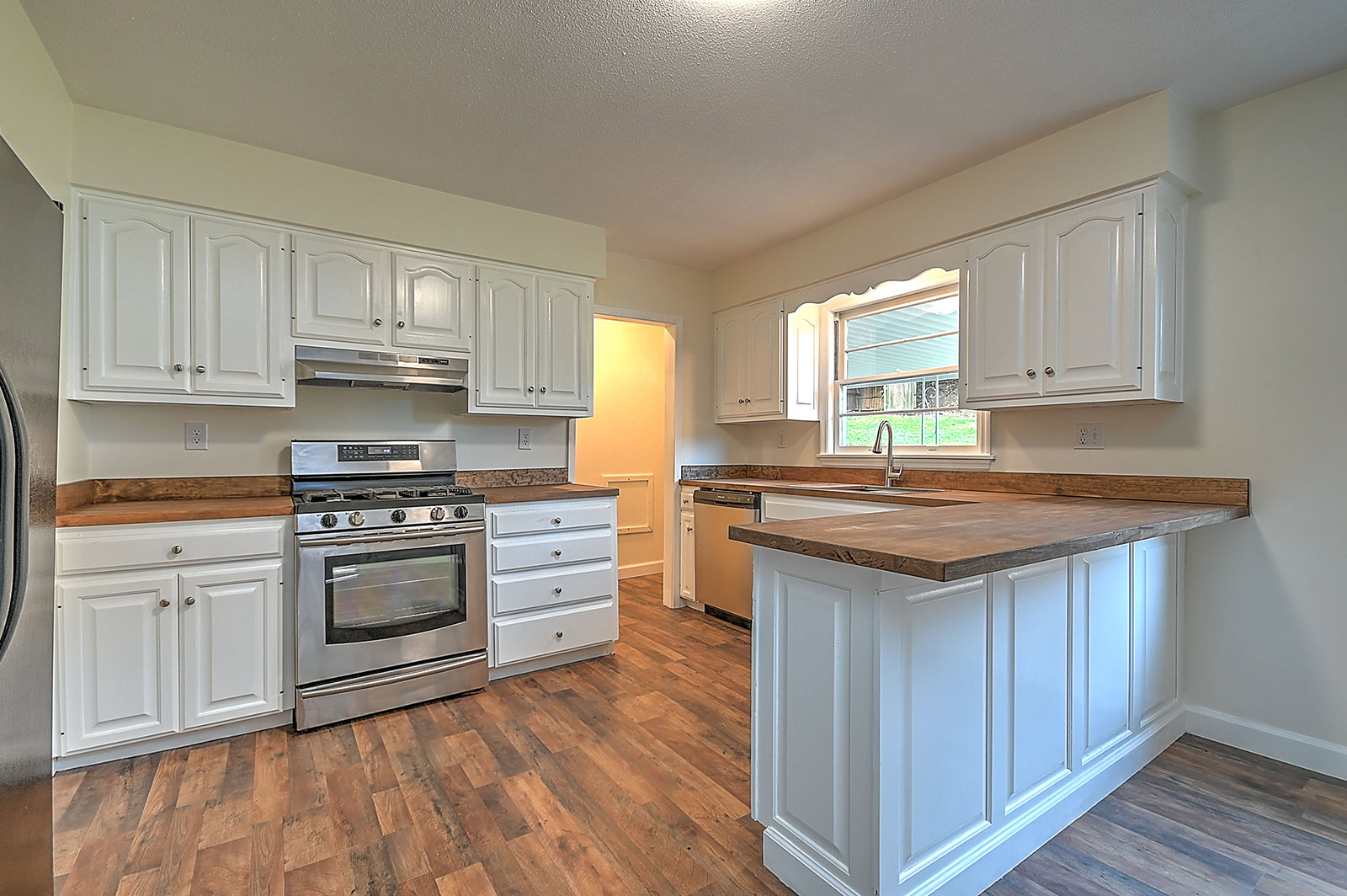 A move-in ready mountain retreat! This professionally renovated brick raised ranch is nestled at the base of Unaka Mountain near the Nolichucky River, conveniently located just minutes from schools, hospitals, shopping, restaurants, and more. Offering lovely mountain views, this home provides a serene setting on 0.78 acres. The spacious, covered front porch and side patio provide comfortable spots for relaxing and enjoying the country breezes. At the back of the home is a covered carport as well as a large yard barn that serves as an excellent workshop or storage space. The warm and inviting living room features a unique fireplace and stylish new hardwood-style flooring that extends into the kitchen. The eat-in kitchen boasts several modern amenities, including new butcher block countertops, new cabinets, new fixtures and lighting, and new stainless-steel appliances. The full bath has also been beautifully renovated, featuring new flooring, fixtures, lighting, vanities, and a tub/shower combination. With a total of four bedrooms, this home ensures ample space for everyone. Each bedroom has been updated with new carpet, with three bedrooms conveniently located upstairs and one downstairs, offering privacy and flexibility. The basement also features a private half-bath, a versatile storage and/or workshop space, and a utility shower for added convenience. A large, finished living room/den area in the basement with nice new flooring provides extra room for relaxation and entertainment. Don't miss the opportunity to call this remarkably renovated ranch your new home—set up a tour today!