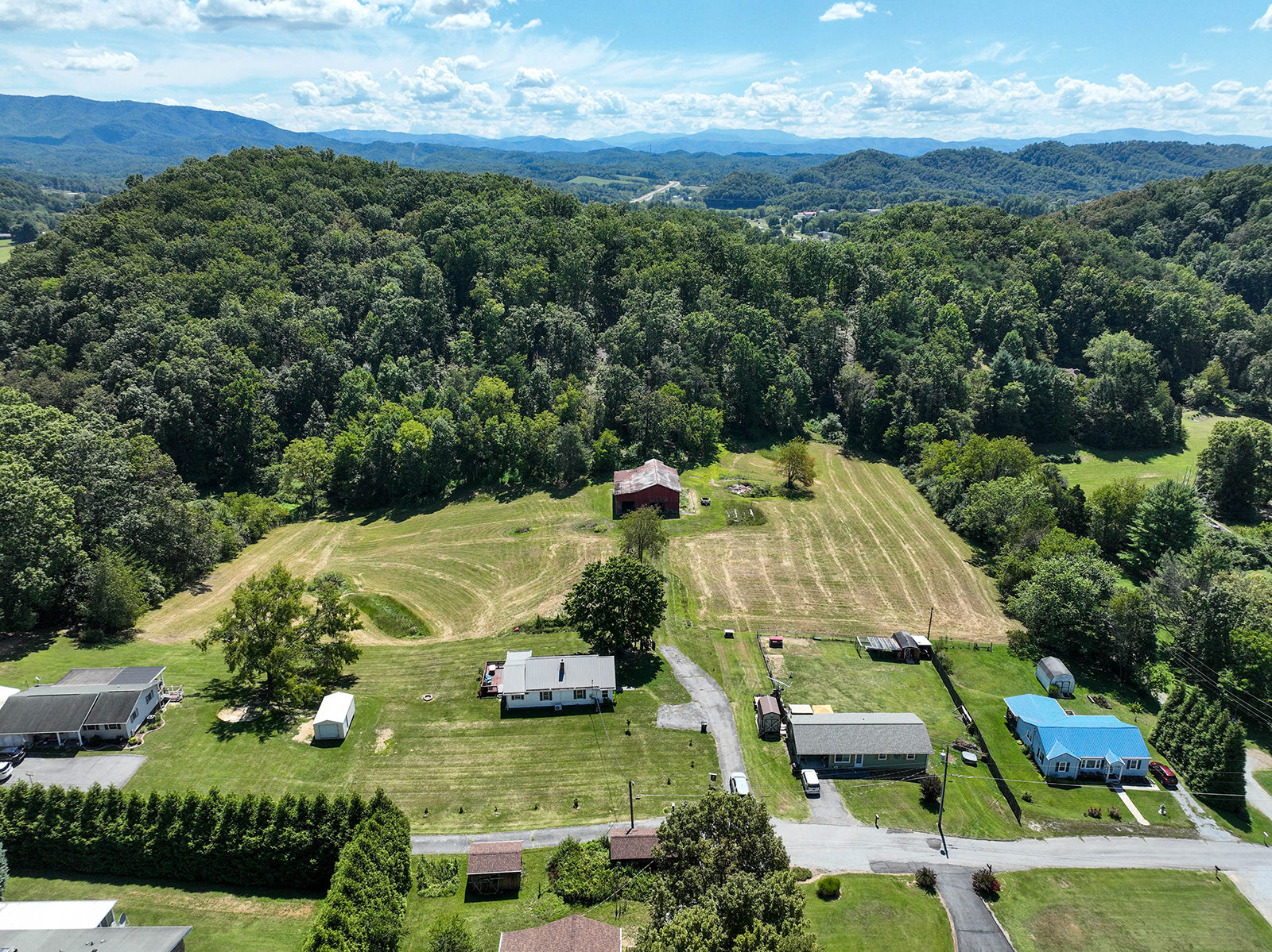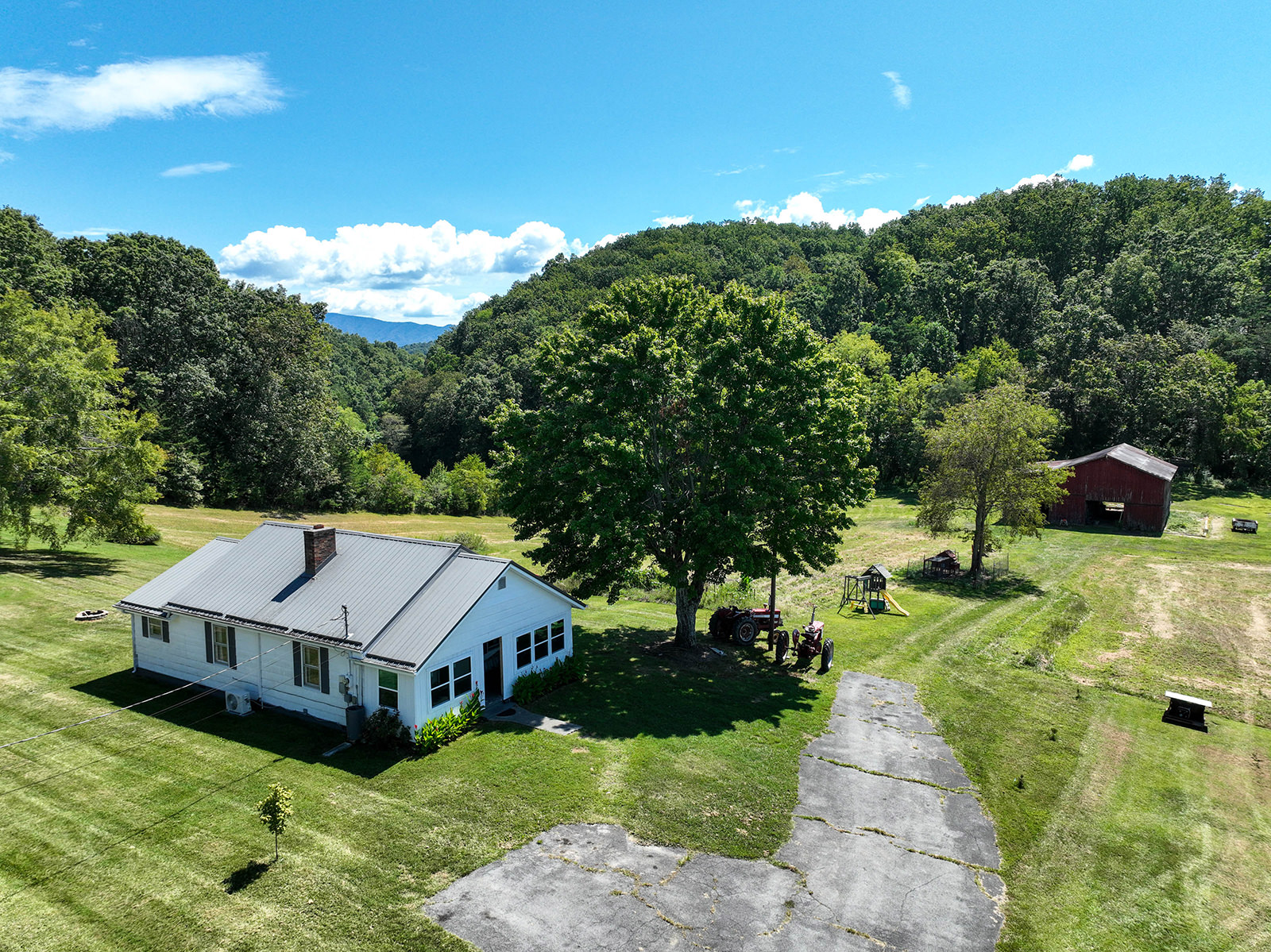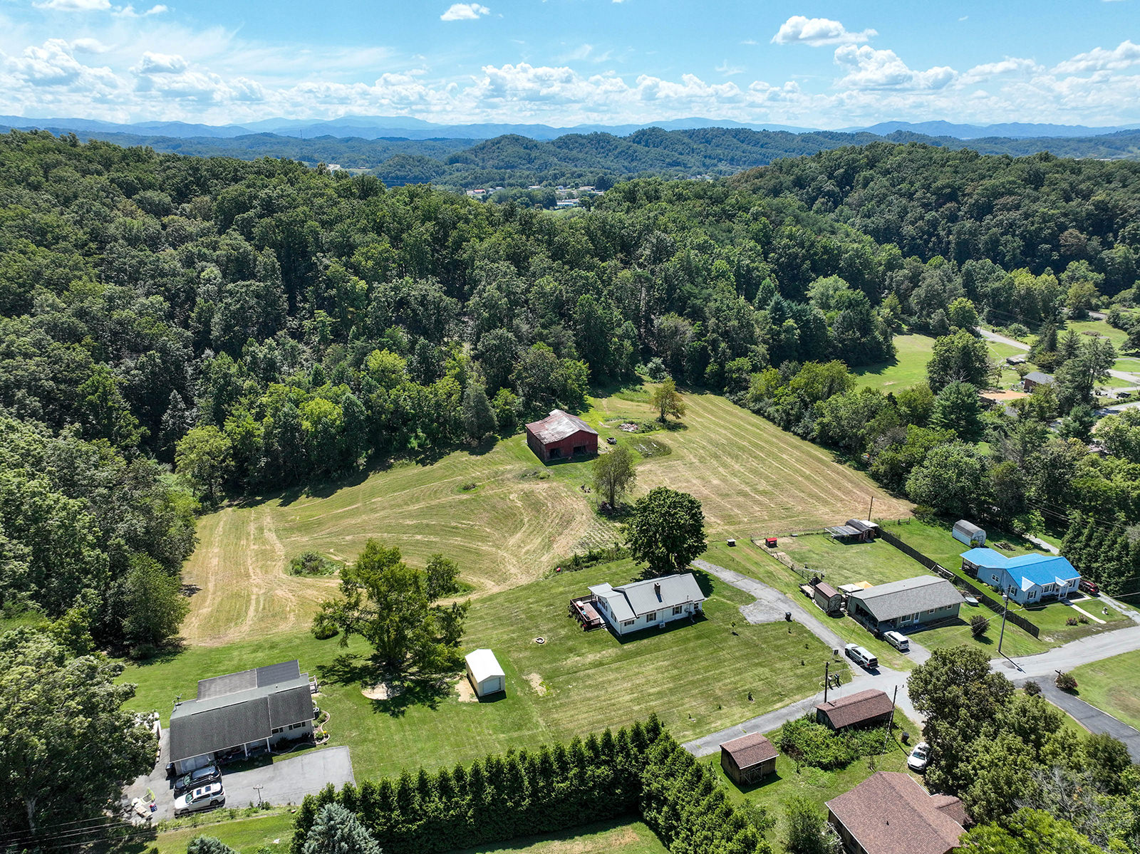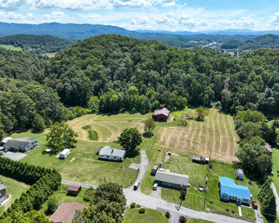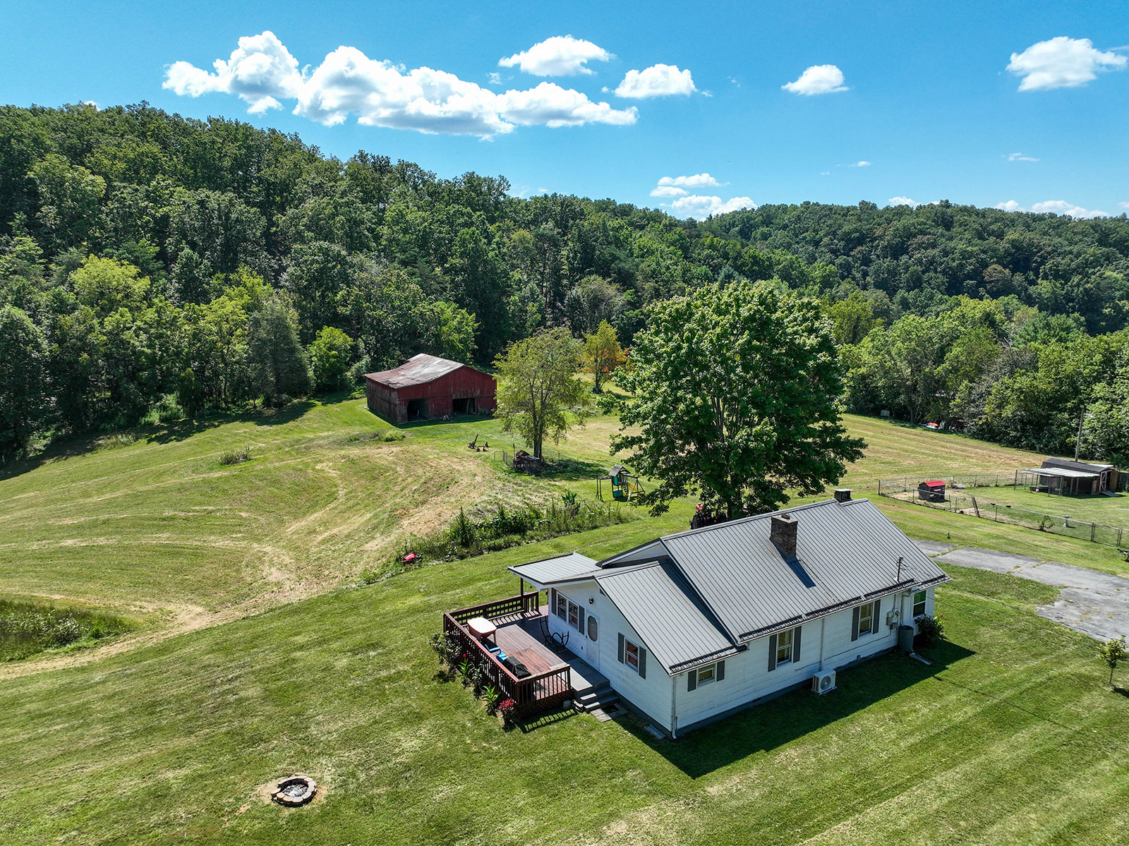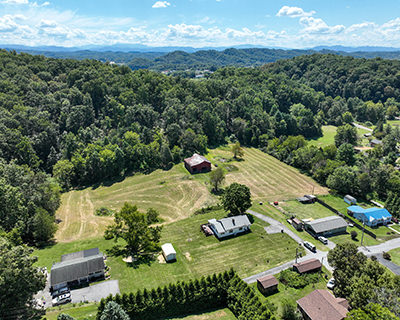 Charming farmhouse on 9 acres! Escape to the peaceful countryside with this cozy 1930s farmhouse, nestled on nearly 10 acres of rolling land with pastures and scenic trails. Whether you dream of gardening, raising livestock, hunting, or simply enjoying wide-open spaces, this serene retreat offers endless opportunities to embrace country living. A partially enclosed patio welcomes you to the front door, from which you'll enter the inviting, open-concept living area that leads to a large dining room with plenty of space for hosting family and friends. From there you'll enter the charming kitchen, equipped with modern appliances and offering lots of counter and cabinet space. The generously sized, well-lit laundry room doubles as a mudroom at the back of the home. The two bedrooms offer peaceful, picturesque views of the surrounding land, with a shared bathroom conveniently located in-between. A new mini-split HVAC system provides year-round comfort indoors, while outdoor living is just as enjoyable thanks to the expansive deck, ideal for soaking in quiet evenings or entertaining under the stars. Adding to the property's appeal is a big classic red tobacco barn, complete with stables, making it ready for horses, livestock, storage, or workshop space. A quaint chicken coop will also convey with property. The owner can leave additional farm equipment with property if desired. With lush, green pastures all around, you'll find plenty of room to explore and create the lifestyle you've always imagined. Located just off Highway 19E, the home is only a short drive to all the amenities the Tri-Cities area has to offer. Boone Lake is conveniently nearby for swimming or boating, and unique sites like Bristol Caverns and the Nellie Pratt Swinging Bridge are just a short drive away. Don't miss out on the unique opportunity to own your own peaceful slice of countryside living.