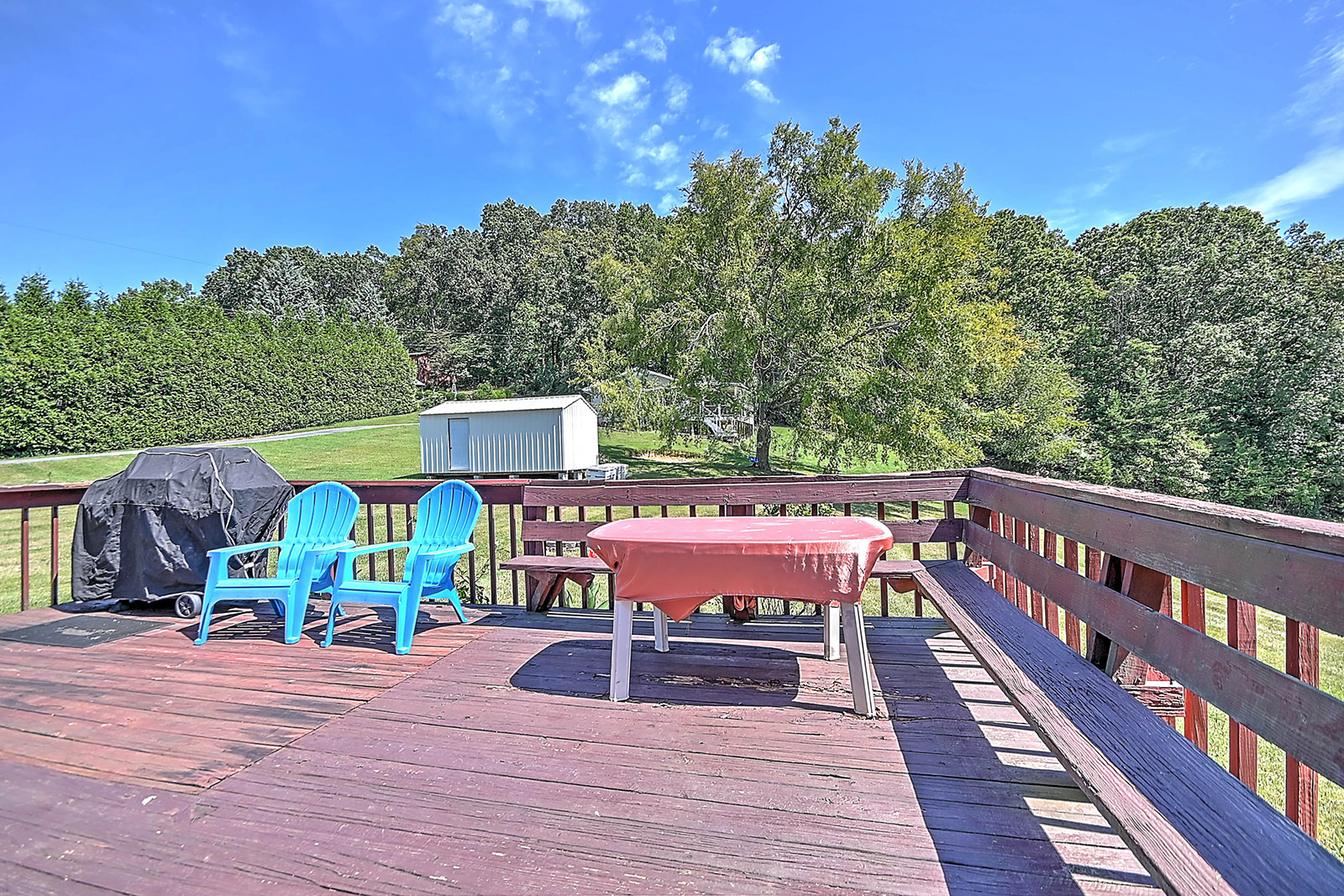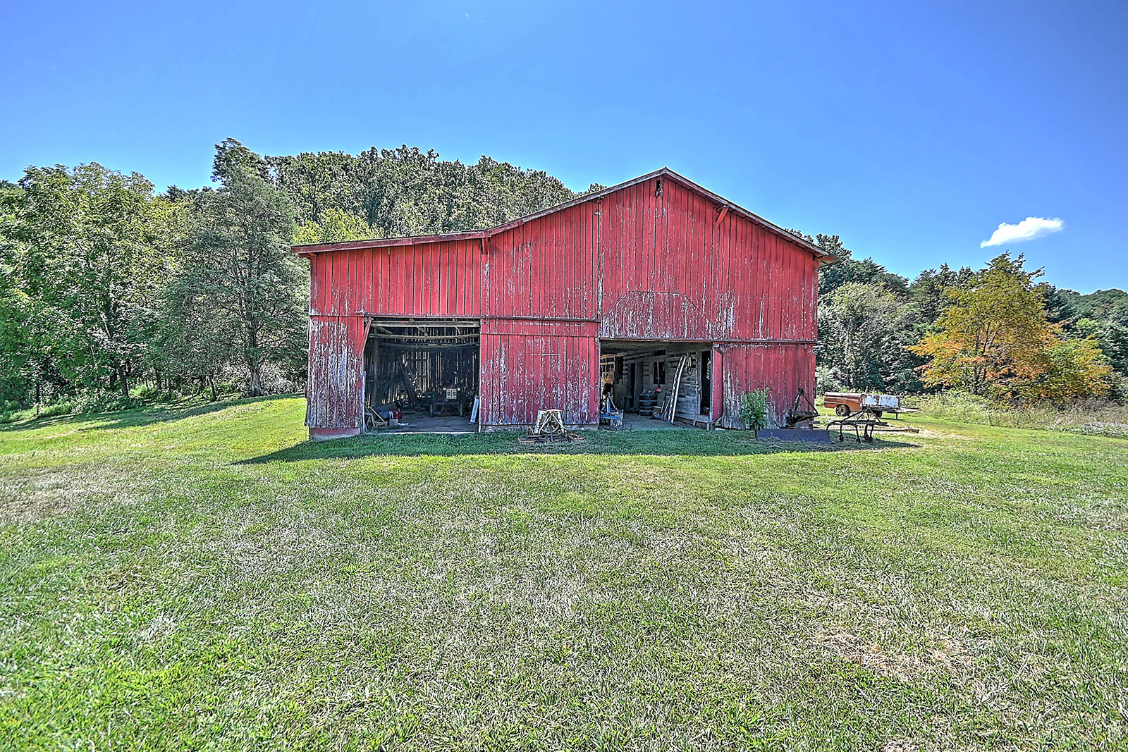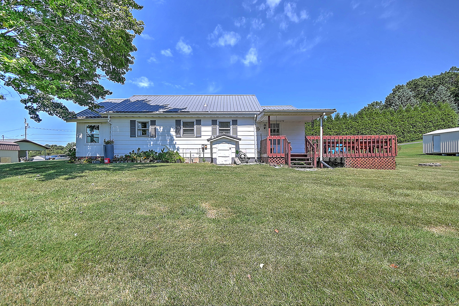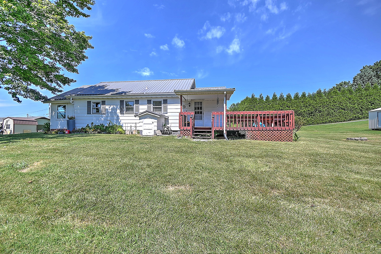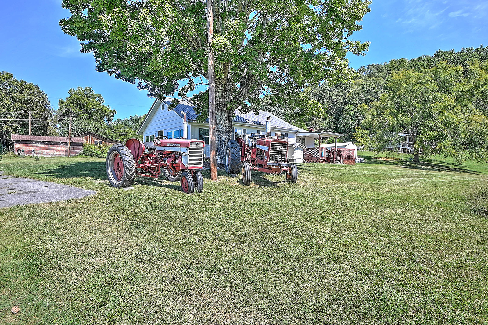 Charming farmhouse on 9 acres! Escape to the peaceful countryside with this cozy 1930s farmhouse, nestled on nearly 10 acres of rolling land with pastures and scenic trails. Whether you dream of gardening, raising livestock, hunting, or simply enjoying wide-open spaces, this serene retreat offers endless opportunities to embrace country living. A partially enclosed patio welcomes you to the front door, from which you'll enter the inviting, open-concept living area that leads to a large dining room with plenty of space for hosting family and friends. From there you'll enter the charming kitchen, equipped with modern appliances and offering lots of counter and cabinet space. The generously sized, well-lit laundry room doubles as a mudroom at the back of the home. The two bedrooms offer peaceful, picturesque views of the surrounding land, with a shared bathroom conveniently located in-between. A new mini-split HVAC system provides year-round comfort indoors, while outdoor living is just as enjoyable thanks to the expansive deck, ideal for soaking in quiet evenings or entertaining under the stars. Adding to the property's appeal is a big classic red tobacco barn, complete with stables, making it ready for horses, livestock, storage, or workshop space. A quaint chicken coop will also convey with property. The owner can leave additional farm equipment with property if desired. With lush, green pastures all around, you'll find plenty of room to explore and create the lifestyle you've always imagined. Located just off Highway 19E, the home is only a short drive to all the amenities the Tri-Cities area has to offer. Boone Lake is conveniently nearby for swimming or boating, and unique sites like Bristol Caverns and the Nellie Pratt Swinging Bridge are just a short drive away. Don't miss out on the unique opportunity to own your own peaceful slice of countryside living.
