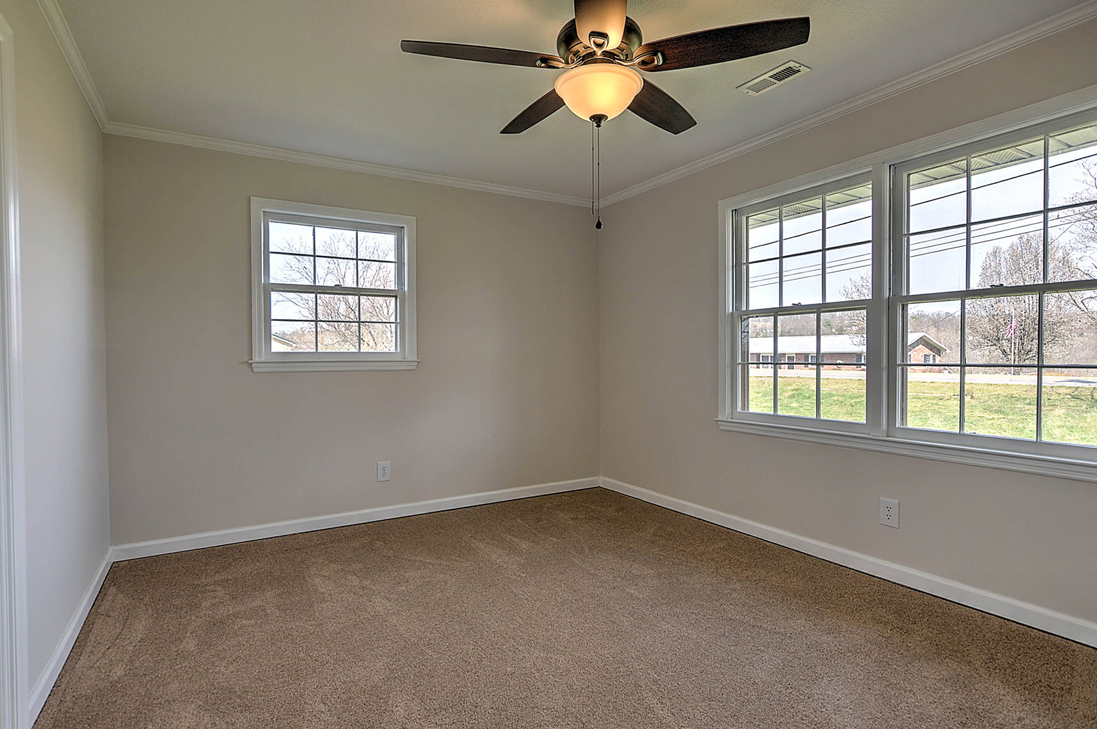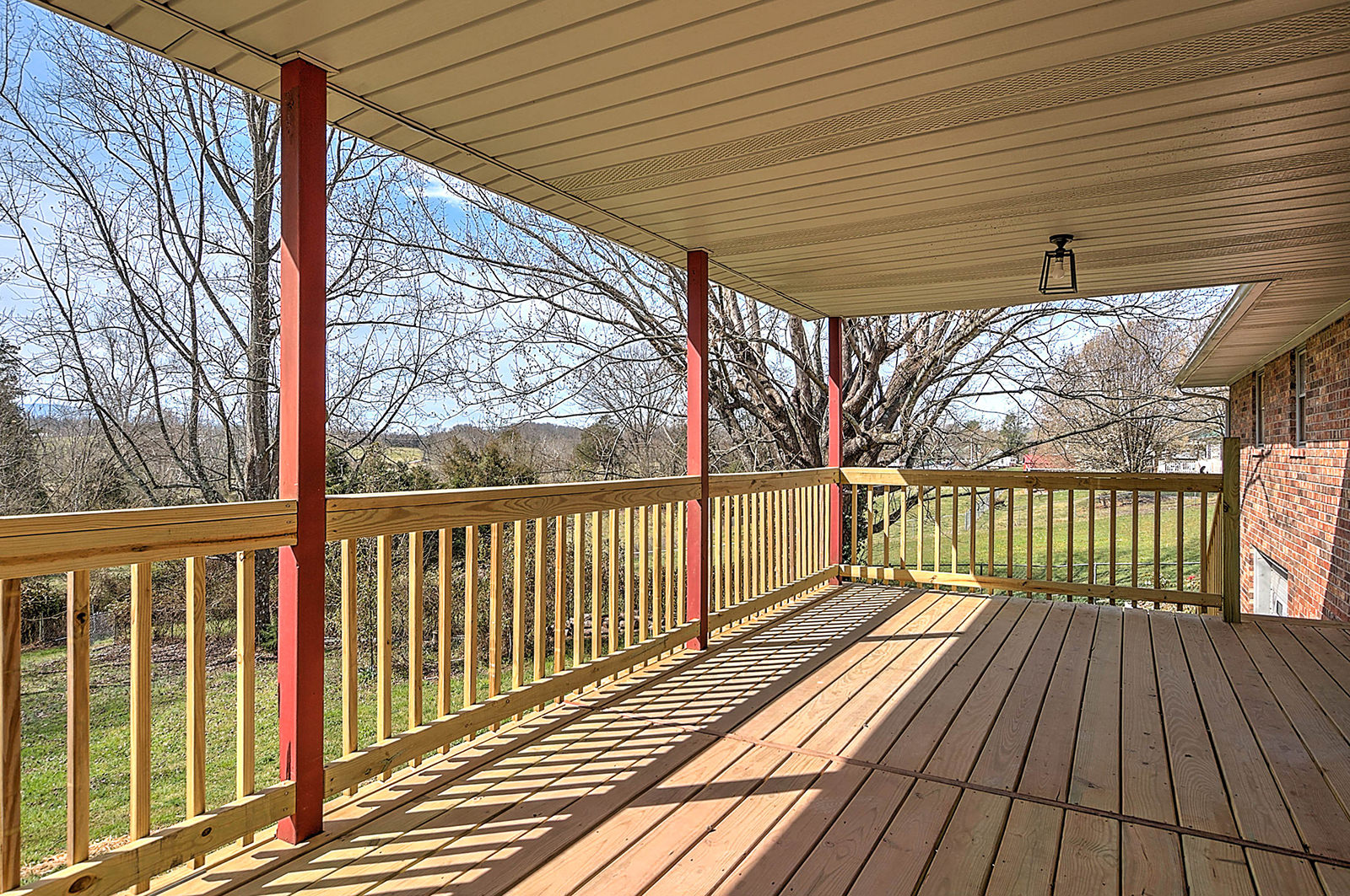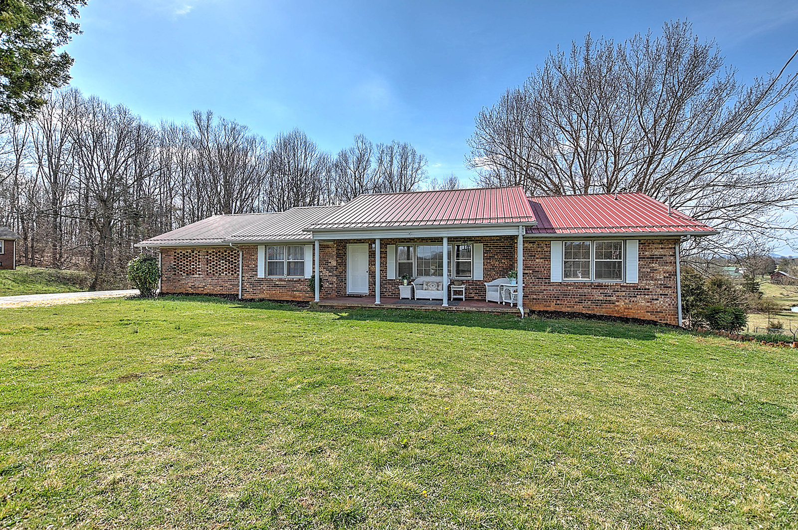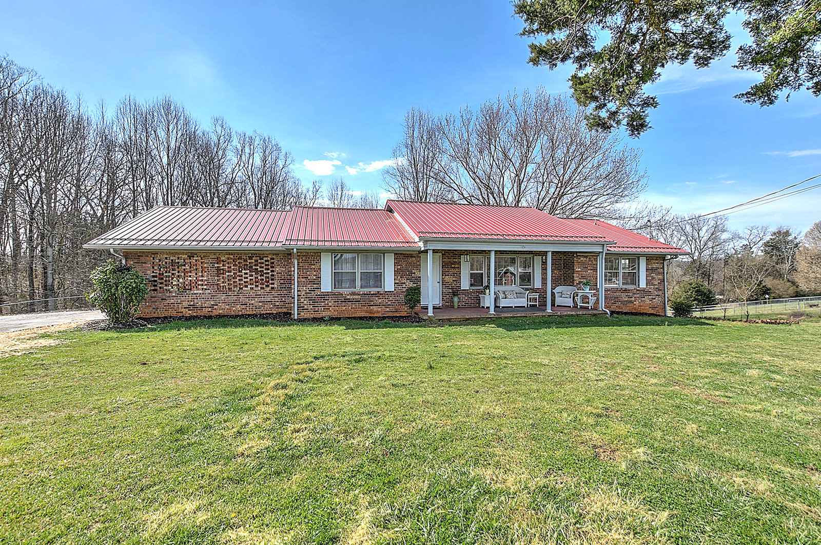 Stunningly updated and move-in ready! This lovely brick ranch features a large, level yard in front and back, perfect for enjoying the fresh air and quiet countryside. The home offers four comfortable bedrooms, including one with extra privacy downstairs, and two and a half bathrooms with all-new fixtures and vanities. Enjoy natural light and a cozy fireplace in the living room, as well as a gorgeous, formal dining room. In the modern, stylish kitchen, you'll love the cabinet space and attractive butcher block countertops, plus the new appliances, a pretty backsplash, and a breakfast nook with beautiful bay windows! Downstairs is a large den with a fireplace, and the basement offers tons of room for storage or even a workshop. The exterior of the home features a large, welcoming front porch with room for patio furniture and rocking chairs, plus a huge deck overlooking the private back yard. Below the deck is even more outdoor living space, with a concrete patio perfect for dining al fresco. With new flooring throughout the home, a metal roof, and a brick exterior, this is a low-maintenance home you'll love for years to come! Conveniently located near the Andrew Johnson Highway and David Crockett High School, it's only a 10-minute drive to historic downtown Jonesborough and all of its amenities.