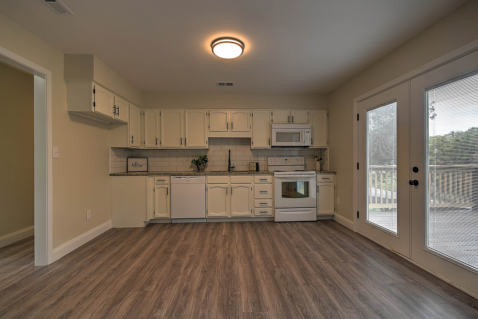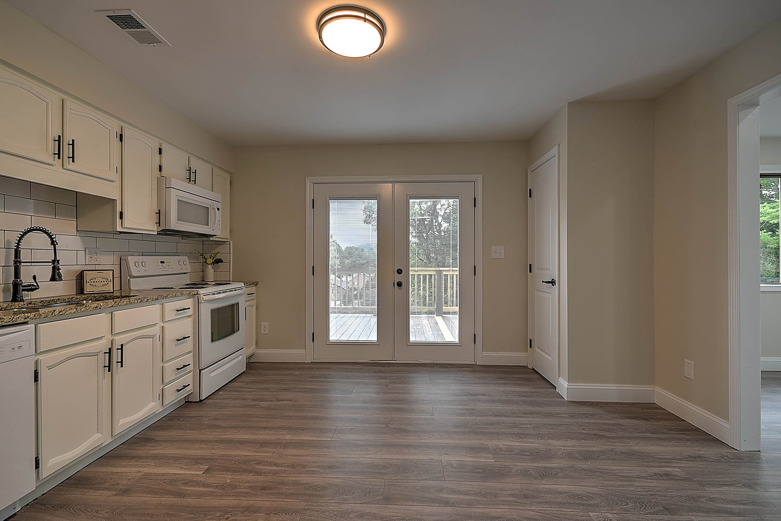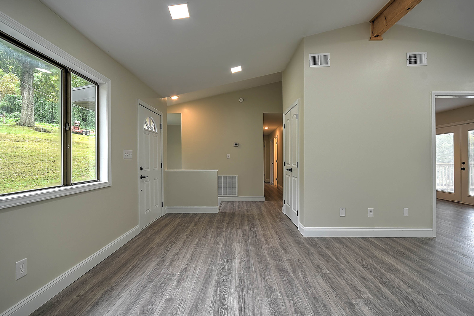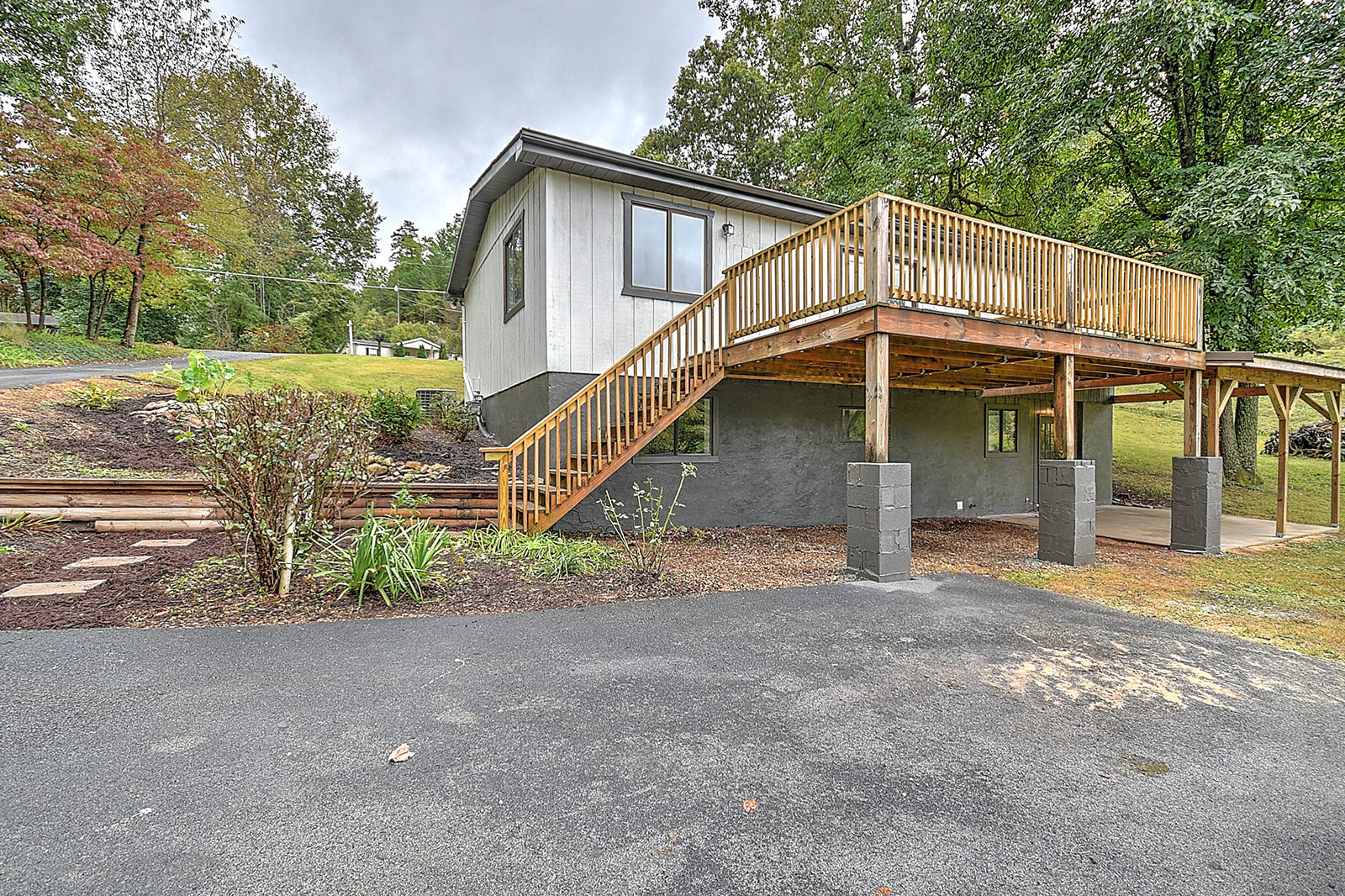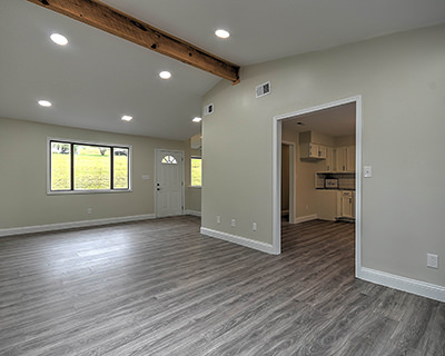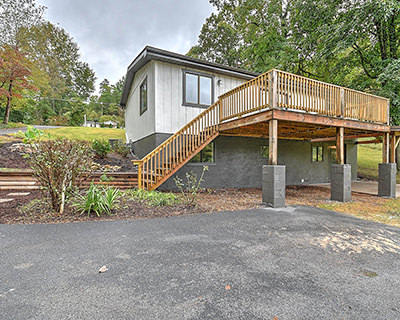 A contemporary home in a country setting! Situated at the edge of the Cherokee National Forest, this beautifully remodeled ranch-style home gives you the best of both worlds. As you enter from the porch through the front door, you'll be wowed by the open, airy living room with new flooring, recessed lights, vaulted ceiling, and exposed wood beam for a bit of rustic flair. The durable, attractive flooring flows into the spacious and completely updated eat-in kitchen, featuring new appliances, new lighting and plumbing fixtures, and a convenient pantry. French doors lead to the back deck, where you can enjoy an elevated view of the surrounding neighborhood and old-growth trees. Downstairs, you'll find a fully finished walkout basement with ample space for a den, media room, game room, home gym, or anything that suits your lifestyle. The basement also includes a large, well-lit laundry room plus a utility room with shelving. As if all these features aren't enough, the property also includes attractive landscaping with a custom water feature, as well as a separate cabin-style building for workshop or storage space. This charming home is just minutes from the Appalachian Trail, the Nolichucky River, and dozens of hiking trails for fans of the outdoors. Set up your showing today! Professionally remodeled by AFH Properties.