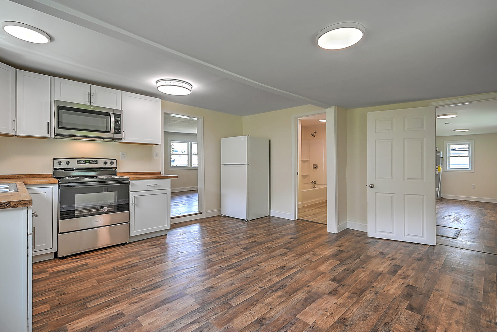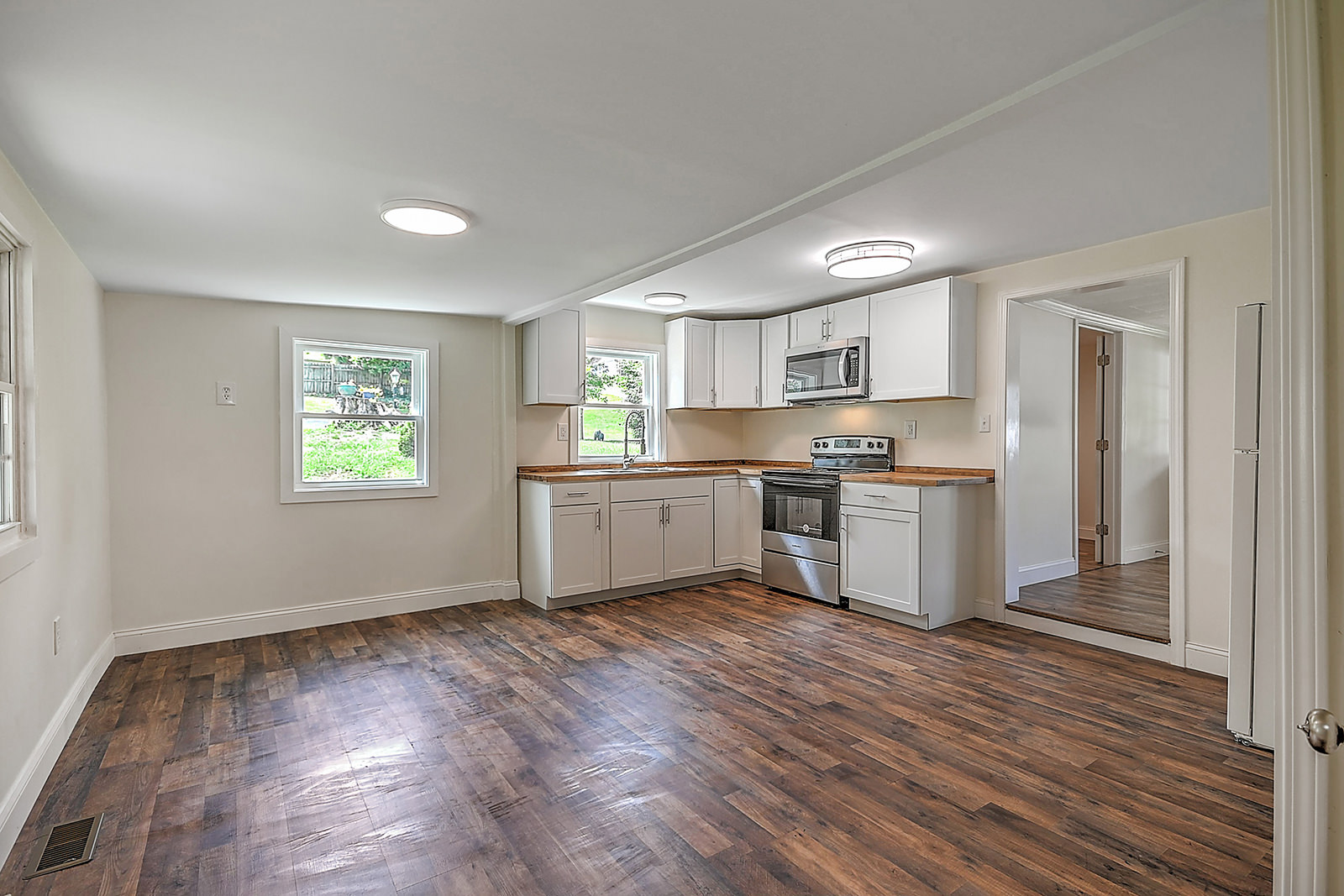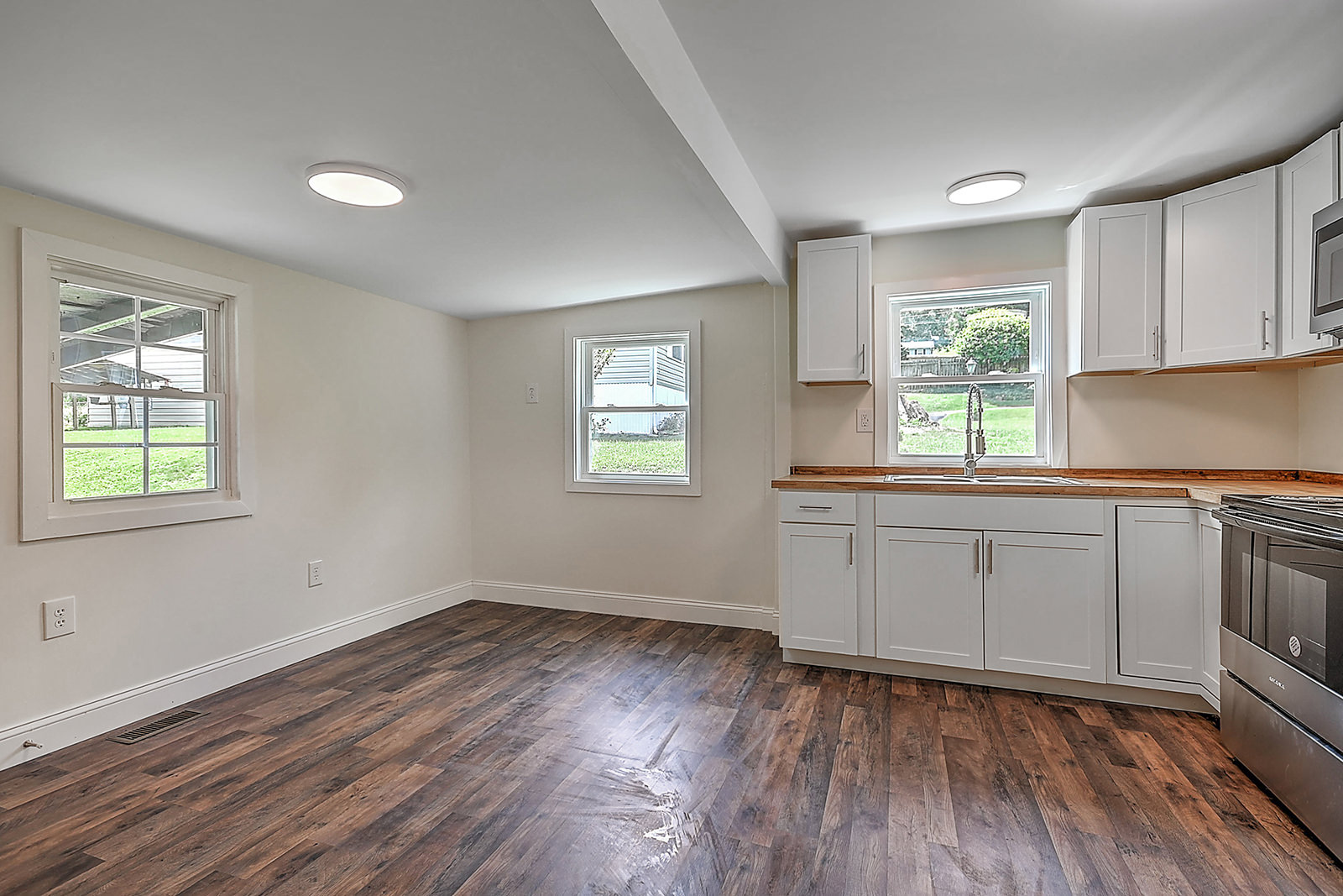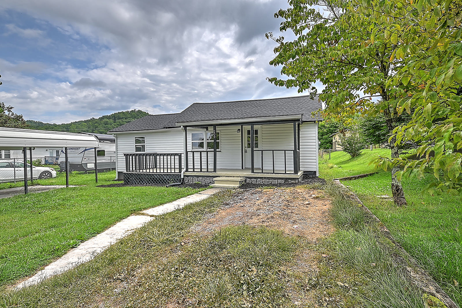 Renovated home with mountain views! This professionally renovated cottage features several major updates, including a new HVAC system, new ductwork, and a new roof. New hardwood-style flooring has been installed throughout the home as well, giving it that new-house feel. The spacious eat-in kitchen has attractive new cabinets, butcher block countertops, new appliances, fixtures, lighting, and flooring, and an adjacent laundry room/utility room at the back of the home that adds to the convenience factor. The bathroom features new flooring, a new tub, new fixtures and lighting, and more. Outside, you'll enjoy the level lot, fenced back yard, and covered front and back porches, perfect for relaxing and taking in the beautiful mountain views. The property also offers a detached carport and building ideal for storing lawn and garden equipment. Located just 7 minutes from Watauga Lakeshore Marina and 20 minutes from Roan Mountain State Park, outdoor enthusiasts will find endless opportunities for adventure, from boating and fishing to hiking and camping. And with easy access to Highway 19E, you can quickly reach nearby amenities. Set up your showing today!
