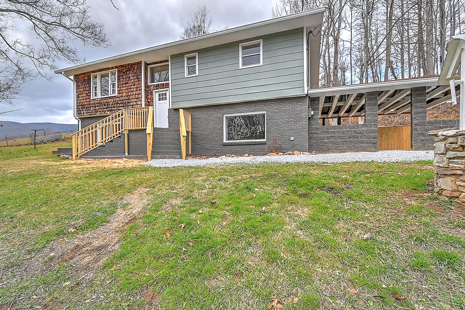 A renovated country oasis! This beautifully renovated split foyer home offers a perfect blend of modern comfort and country charm. Nestled in a tranquil setting, this home provides a serene escape with stunning mountain views. As you step inside, you'll be greeted by an open concept layout that seamlessly connects the living spaces. The living room boasts a beautiful brick fireplace, creating a cozy focal point, while large windows flood the space with natural light. The main floor features new, durable hardwood-style flooring throughout the common areas, adding a touch of sophistication. The renovated kitchen is a delight, featuring new stainless-steel appliances, butcher block countertops, and a lovely backsplash. The home offers four bedrooms, all with new carpeting for a plush and comfortable feel. The full bath on the main floor provides convenience for everyone in the home. An additional bonus is the extra space that can be used as a family room or a formal dining room, providing flexibility to suit your lifestyle. Downstairs, a spacious den awaits, filled with natural light and offering a perfect space for relaxation or entertainment. The full bathroom/laundry room downstairs adds convenience and functionality to the lower level. The property boasts easy access to all of the Tri-Cities region, making commuting a breeze. For outdoor enthusiasts, the home is surrounded by endless opportunities for activities, including hiking trails in the nearby Cherokee National Forest. Situated between Watauga and South Holston Lakes, water activities and scenic beauty are just a short drive away. Experience the best of both worlds — a renovated hillside home in a country setting with modern amenities and easy access to the natural beauty and recreational opportunities of the Tri-Cities. Set up your showing today!