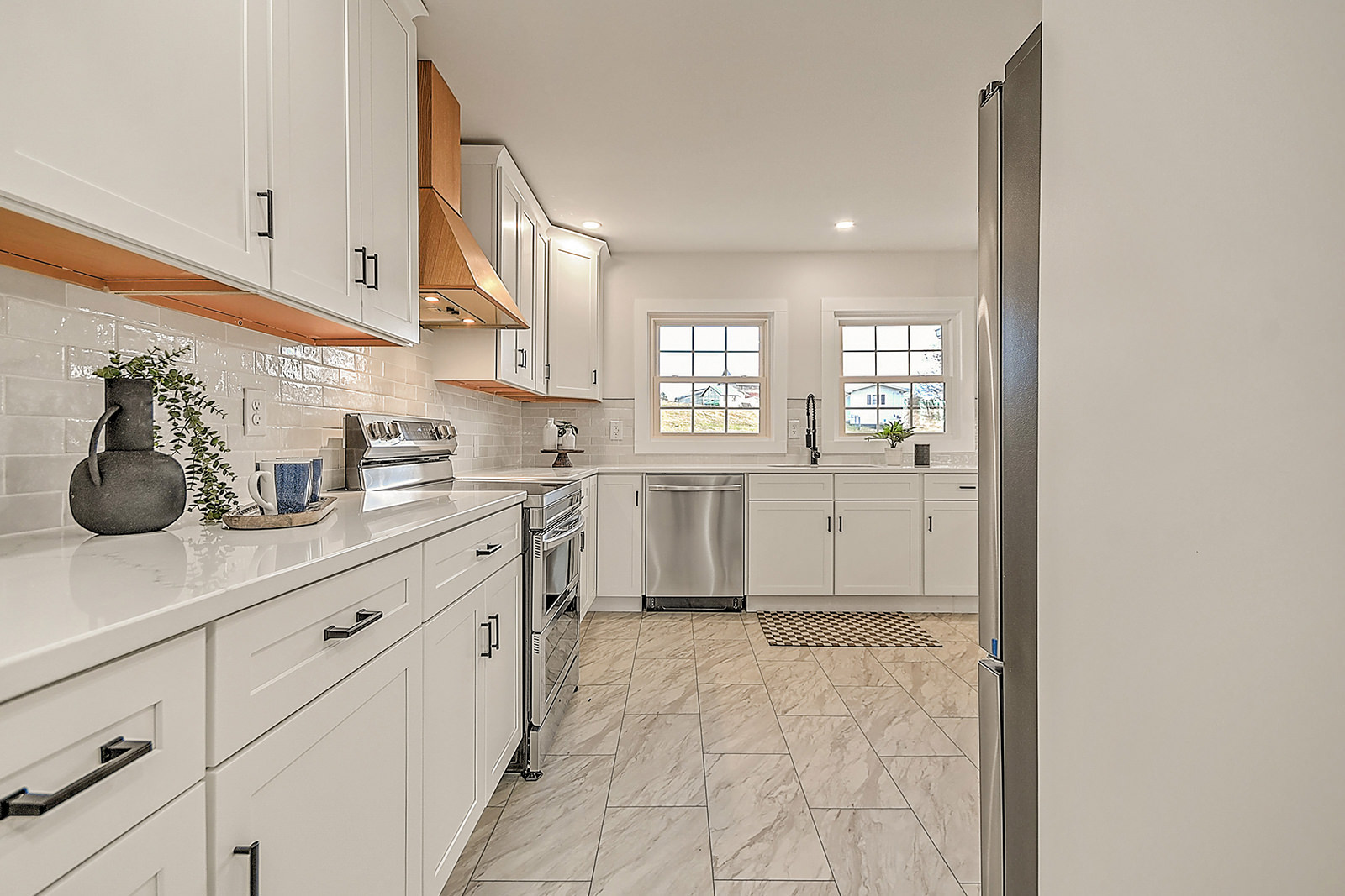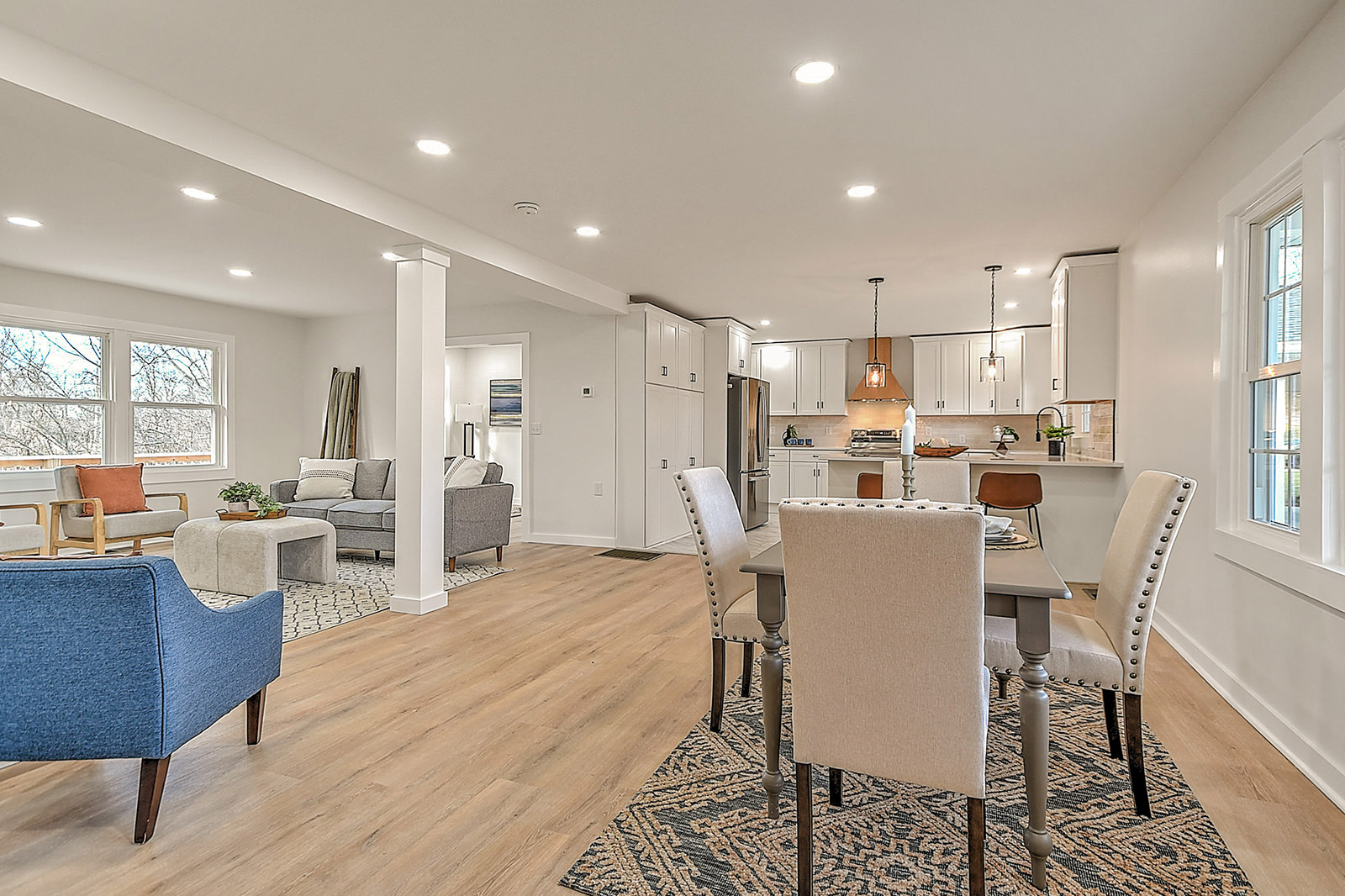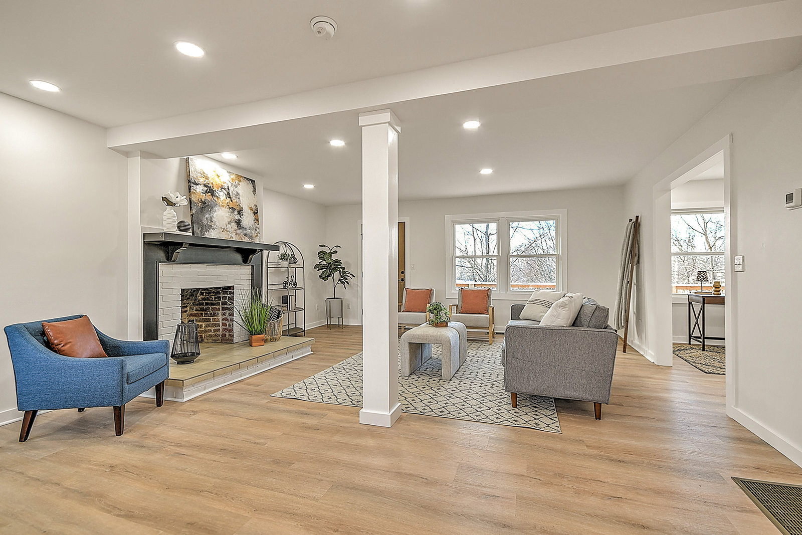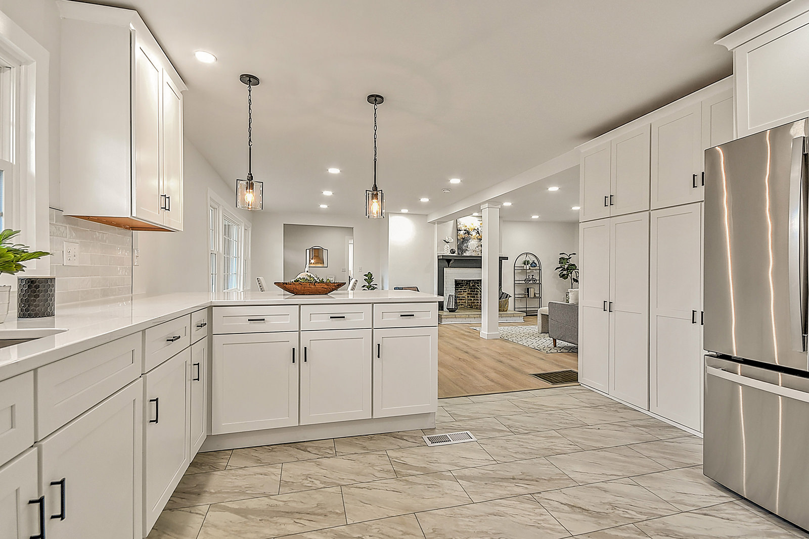 Fully renovated rambler! Set on over half an acre with peaceful views of rolling farmland, this spacious, beautifully updated ranch home offers modern comfort, flexibility, and serene living, with no HOA restrictions. The bright, open-concept floor plan is filled with natural light and finished with durable luxury vinyl plank flooring and new lighting fixtures throughout. The welcoming living room centers around a beautiful fireplace, creating a cozy gathering space that flows seamlessly into the formal dining room and stunning kitchen. Designed to impress and perform, the kitchen features white shaker cabinetry, quartz countertops, a tile backsplash, new stainless-steel appliances, and a charming breakfast nook, making this space ideal for both everyday living and entertaining. The main level offers exceptional flexibility with not one, but two primary suites! The first features double closets and a stunning, spa-like en suite bath with double vanities, a tiled shower, and a separate soaking tub. At the opposite side of the home, the second primary suite includes its own private entrance and en suite bath, offering incredible privacy and convenience. A third bedroom, full bathroom, and convenient mudroom complete the main level. Downstairs, you'll find two additional bedrooms, a full bath, and a huge finished area that gives you the flexibility to create the space of your dreams. Two driveways, an oversized attached carport, and a drive-under garage make it incredibly convenient to park multiple vehicles. A covered front porch invites you to slow down and enjoy the quiet surroundings, while the expansive deck overlooks the back yard and is an excellent spot for cookouts and get-togethers. With a new roof, durable new smart siding, and new electrical and plumbing systems, this home offers peace of mind for years to come. Situated just minutes from schools, shopping, dining, and entertainment venues, this property combines a desirable location with the space, privacy, and versatility you're searching for. Set up your showing today!
