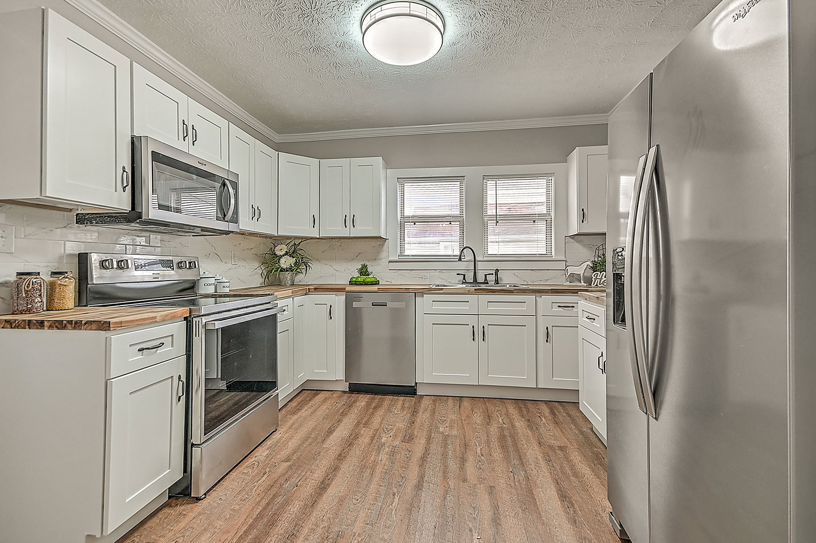 Classic Craftsman, prime location! Experience timeless charm with all the modern comforts in this beautifully renovated Craftsman home offering over 1,800 square feet of thoughtfully updated living space. From the moment you arrive, the wide, covered front porch invites you to slow down and stay awhile as you enjoy morning coffee or evening conversations. Inside, you'll find new lighting and flooring throughout, blending historic character with fresh, contemporary style. The main level features a welcoming living room, a dedicated dining room, and a stunning new kitchen complete with custom luxury cabinetry, butcher block countertops, and new stainless-steel appliances. A convenient main-floor bedroom and full bath, both fully updated, add flexibility, while the mudroom with laundry hookups keeps everyday life clean, organized, and functional. Upstairs, the private primary suite offers a peaceful retreat with an en suite bath, alongside two additional bedrooms, a bonus room ideal for a home office or playroom, and extra storage space. All four bedrooms feature new carpet and charming barn-door closets that add both style and character. Out back, enjoy a very large, fully fenced yard, perfect for pets, playing, gardening, or entertaining. The location is hard to beat, with quick access to local schools, hospitals, and the shopping and dining options along Fort Henry Drive and Stone Drive. In addition, Fort Henry Mall, downtown Kingsport, the Renaissance Center, and Borden Park and Playground are all just minutes away. Classic Craftsman charm, modern updates, generous space, and a prime Kingsport location: This home truly has it all. Schedule your showing today!