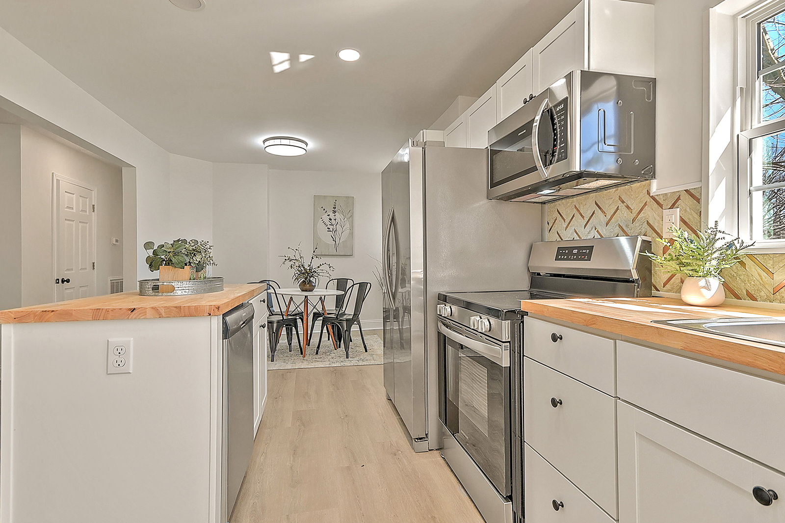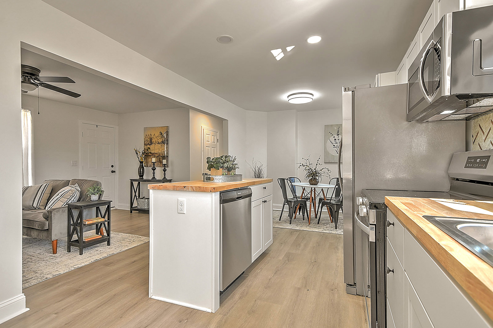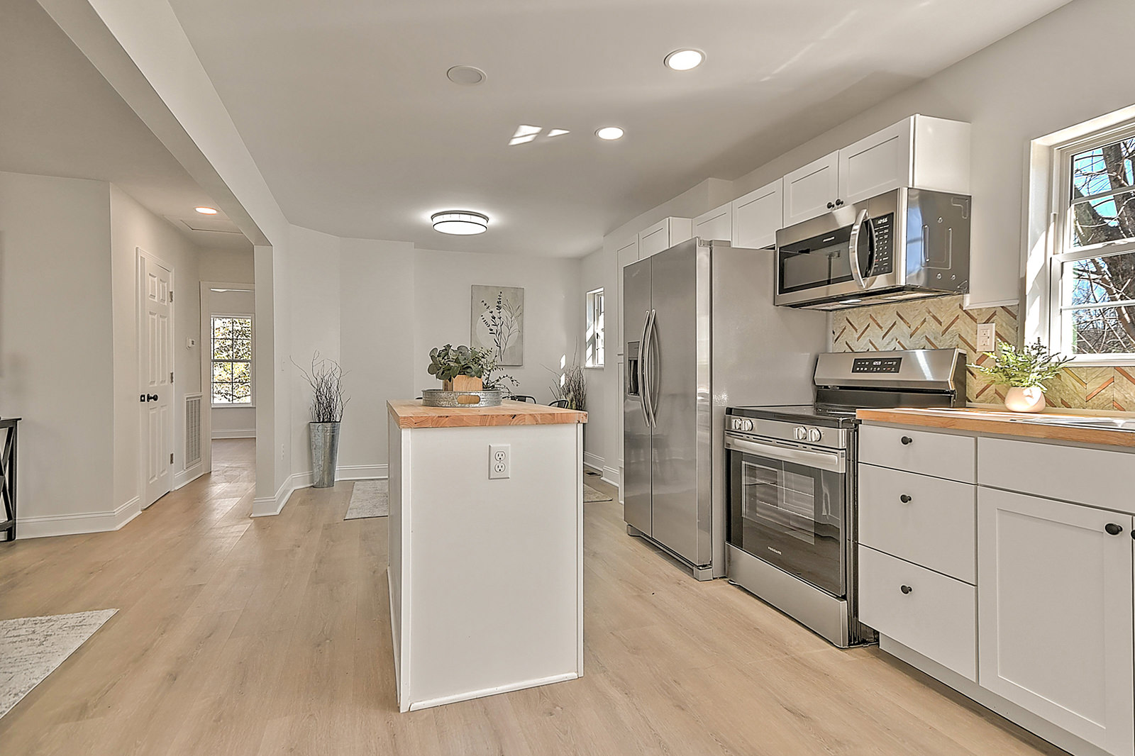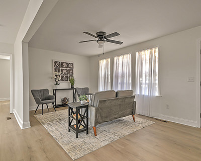 One-level living with major updates! Fully renovated and thoughtfully updated, this move-in-ready ranch blends modern style with everyday comfort, all in a prime location just minutes from downtown and the Johnson City Country Club. As you enter the home from the attractive pergola-style front porch, you'll fall in love with the open-concept layout, starting with the inviting living room and followed by the charming breakfast nook and completely renovated kitchen. The bright and beautiful kitchen boasts new cabinets, butcher block countertops, a stylish backsplash, stainless-steel appliances, a convenient island, and new lighting and fixtures. The home features a primary bedroom with a full en suite bath, as well as two additional bedrooms and a second full bath. Both bathrooms showcase new flooring, contemporary vanities, updated fixtures, and modern lighting for a cohesive, polished look. Major upgrades provide peace of mind, including a new metal roof, a new HVAC system, durable new flooring and inset lighting throughout the home. Out back, a deck overlooks the fenced backyard, ideal for pets, play, or enjoying quiet evenings outdoors. Conveniently located, the home is a 5-minute drive to Rotary Park, a popular outdoor area with covered picnic shelters, an inclusive playground, and a splashpad for hours of fun. When it's time for shopping, dining, or other amenities, you'll find yourself just a short drive from the vibrant North Roan Street area or downtown Johnson City, ensuring that all your needs are met within a stone's throw of your new home. Don't miss out on the opportunity to own this professionally renovated ranch. Set up your showing today!