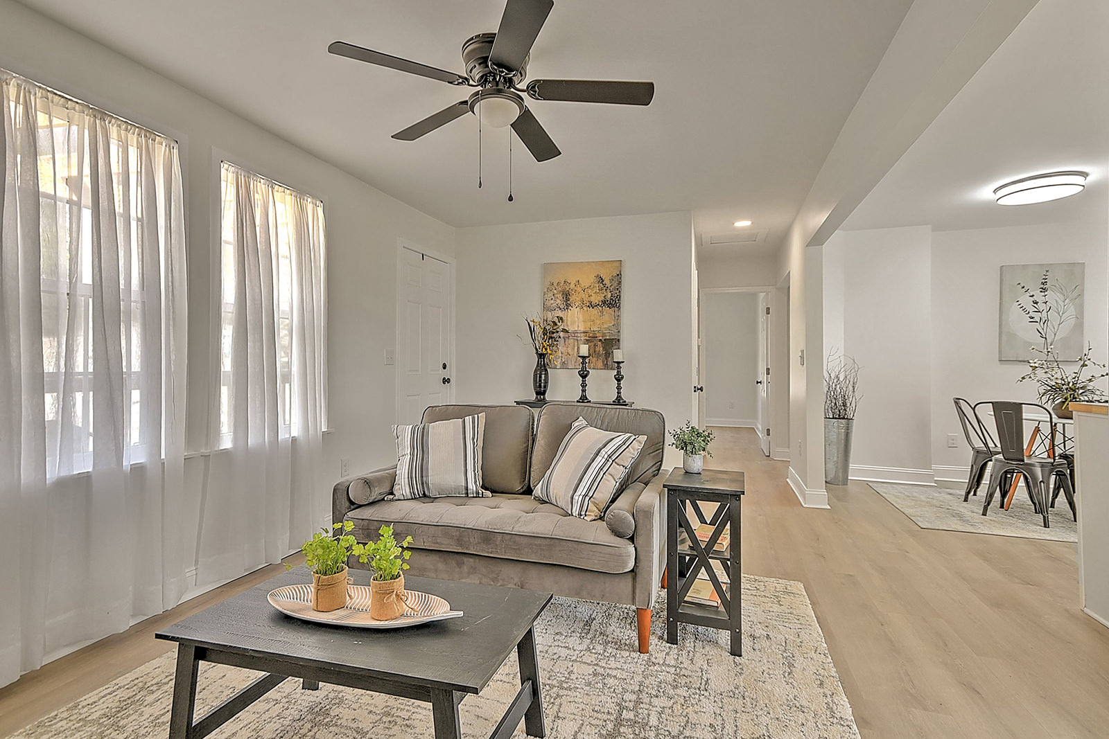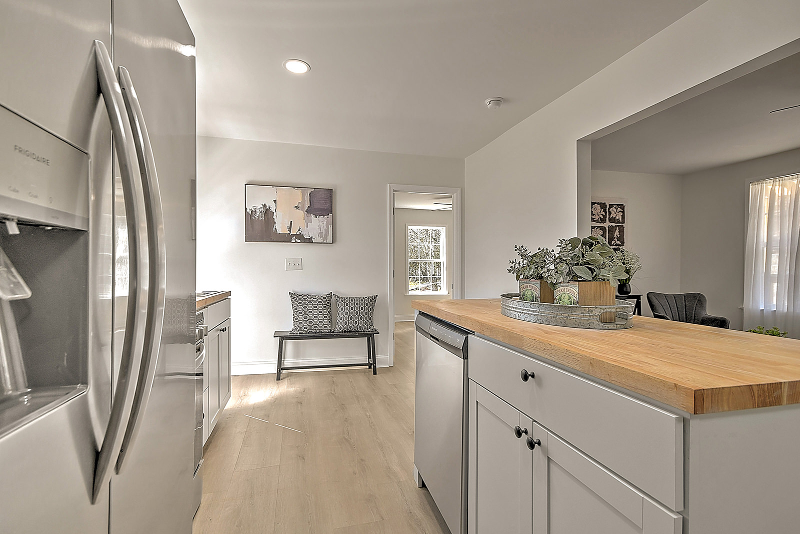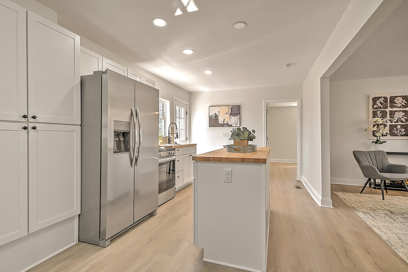 One-level living with major updates! Fully renovated and thoughtfully updated, this move-in-ready ranch blends modern style with everyday comfort, all in a prime location just minutes from downtown and the Johnson City Country Club. As you enter the home from the attractive pergola-style front porch, you'll fall in love with the open-concept layout, starting with the inviting living room and followed by the charming breakfast nook and completely renovated kitchen. The bright and beautiful kitchen boasts new cabinets, butcher block countertops, a stylish backsplash, stainless-steel appliances, a convenient island, and new lighting and fixtures. The home features a primary bedroom with a full en suite bath, as well as two additional bedrooms and a second full bath. Both bathrooms showcase new flooring, contemporary vanities, updated fixtures, and modern lighting for a cohesive, polished look. Major upgrades provide peace of mind, including a new metal roof, a new HVAC system, durable new flooring and inset lighting throughout the home. Out back, a deck overlooks the fenced backyard, ideal for pets, play, or enjoying quiet evenings outdoors. Conveniently located, the home is a 5-minute drive to Rotary Park, a popular outdoor area with covered picnic shelters, an inclusive playground, and a splashpad for hours of fun. When it's time for shopping, dining, or other amenities, you'll find yourself just a short drive from the vibrant North Roan Street area or downtown Johnson City, ensuring that all your needs are met within a stone's throw of your new home. Don't miss out on the opportunity to own this professionally renovated ranch. Set up your showing today!