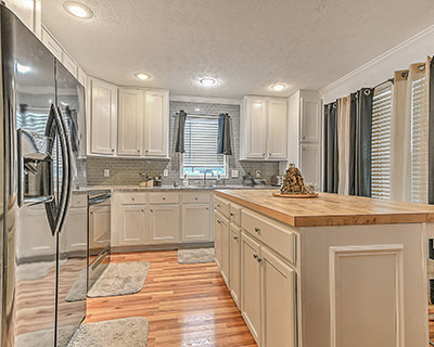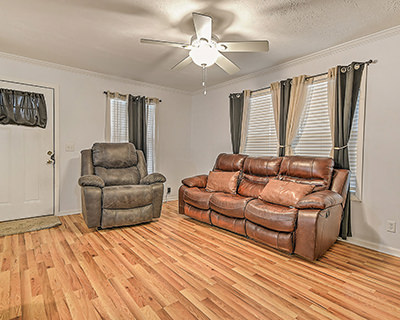 Adorable and affordable! Discover comfort, convenience, and value, all wrapped into one beautifully updated, one-level manufactured home with mountain views and an unbeatable Bristol location. Only 10 minutes from the world-renowned Bristol Motor Speedway and just off the Volunteer Parkway, this home offers an affordable, low-maintenance way to enjoy life in Bristol while staying close to everything you need. Inside, you'll love the simple, open-concept layout and beautiful flooring that flows throughout the home, creating a light and welcoming atmosphere. The eat-in kitchen is a standout, featuring stainless-steel appliances, inset lighting, a lovely tile backsplash, and a center island with seating. The primary suite provides a private retreat with a walk-in closet and en suite bath. Two additional bedrooms offer flexibility for family, guests, a home office, or hobbies, including one with its own walk-in closet. A second full bath with a double-sink vanity adds everyday convenience, while the dedicated laundry room keeps chores organized and out of sight. Step outside to enjoy mountain views from the spacious covered front porch or relax on the back patio. The large two-car carport, shed/yard barn, and charming white picket fence complete the outdoor space. Location truly sets this home apart. You're just minutes from the trails, playgrounds, baseball fields, and green spaces of several local parks. Downtown Bristol is just 12 minutes away, offering a vibrant atmosphere with plenty to see and do. Shopping, dining, health care facilities, and other everyday amenities are all easily accessible thanks to the home's close proximity to the Volunteer Parkway. Move-in ready, well-located, and affordable, this home checks all the boxes for comfortable living in the heart of Bristol. Schedule your showing today!