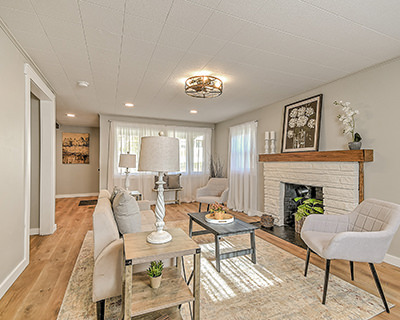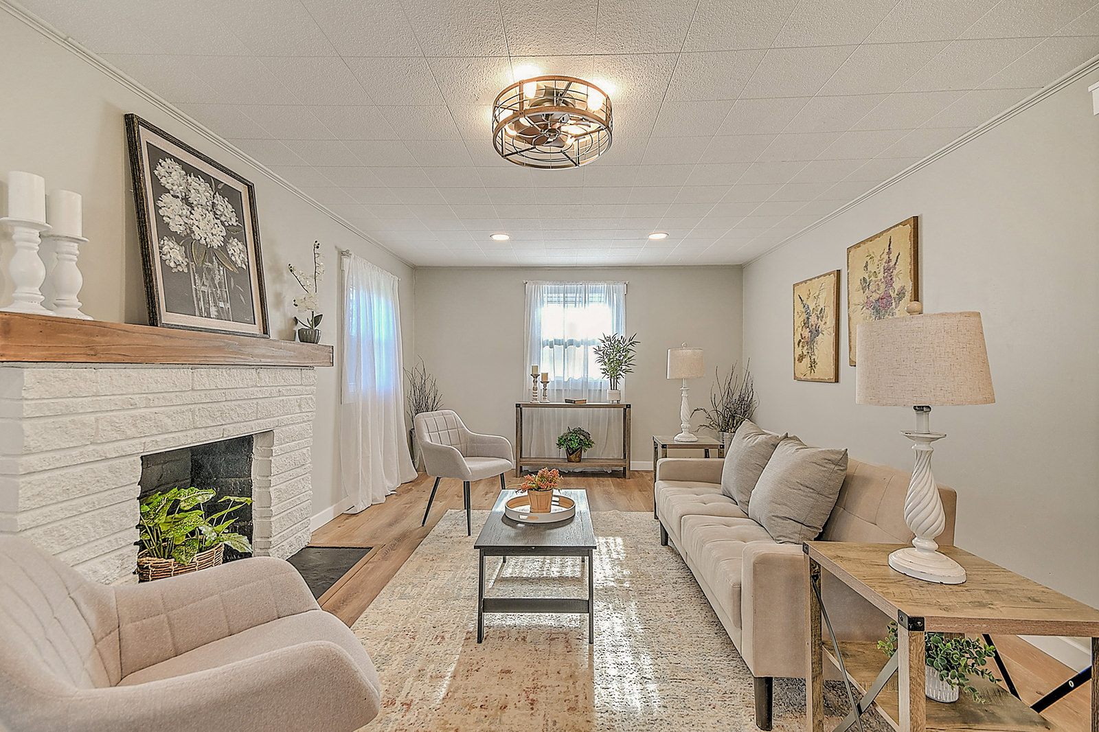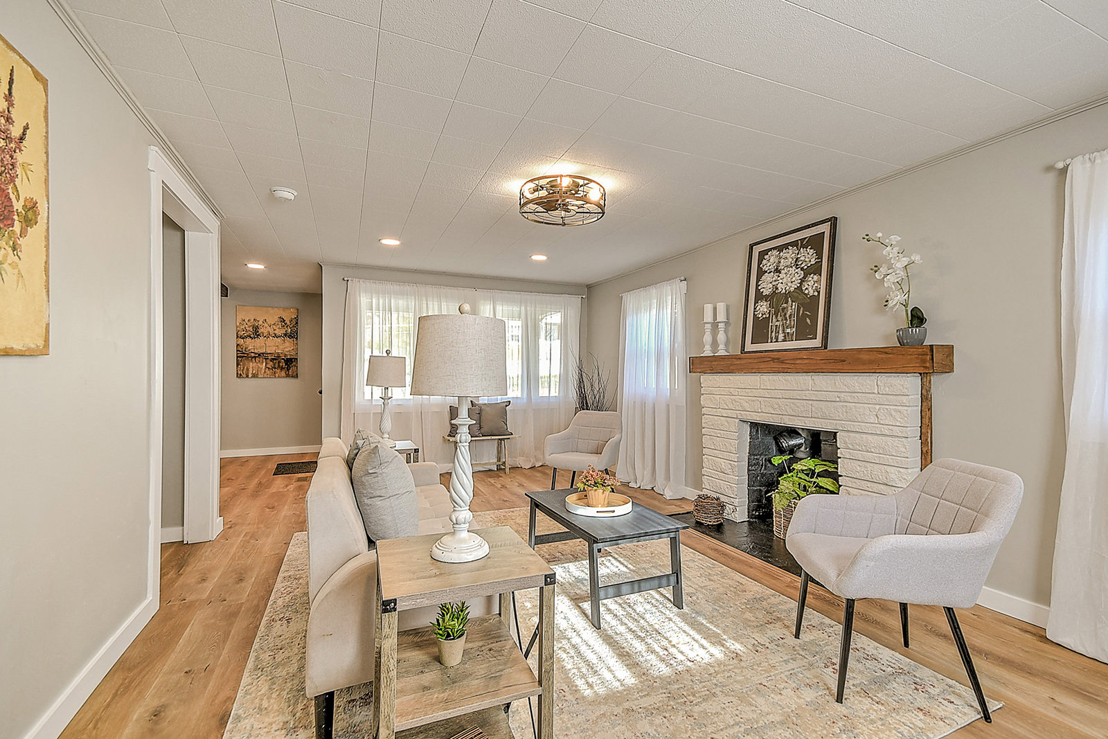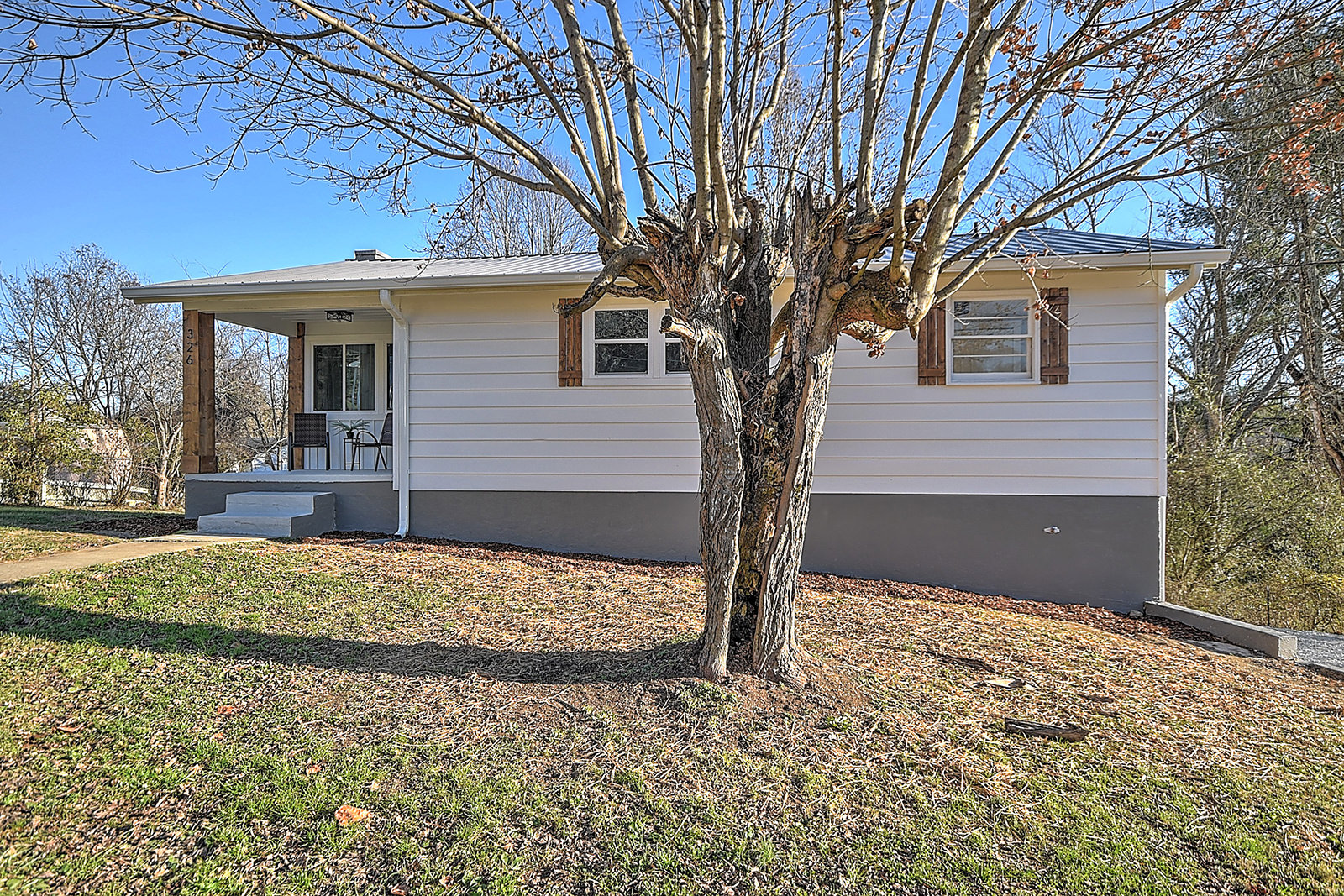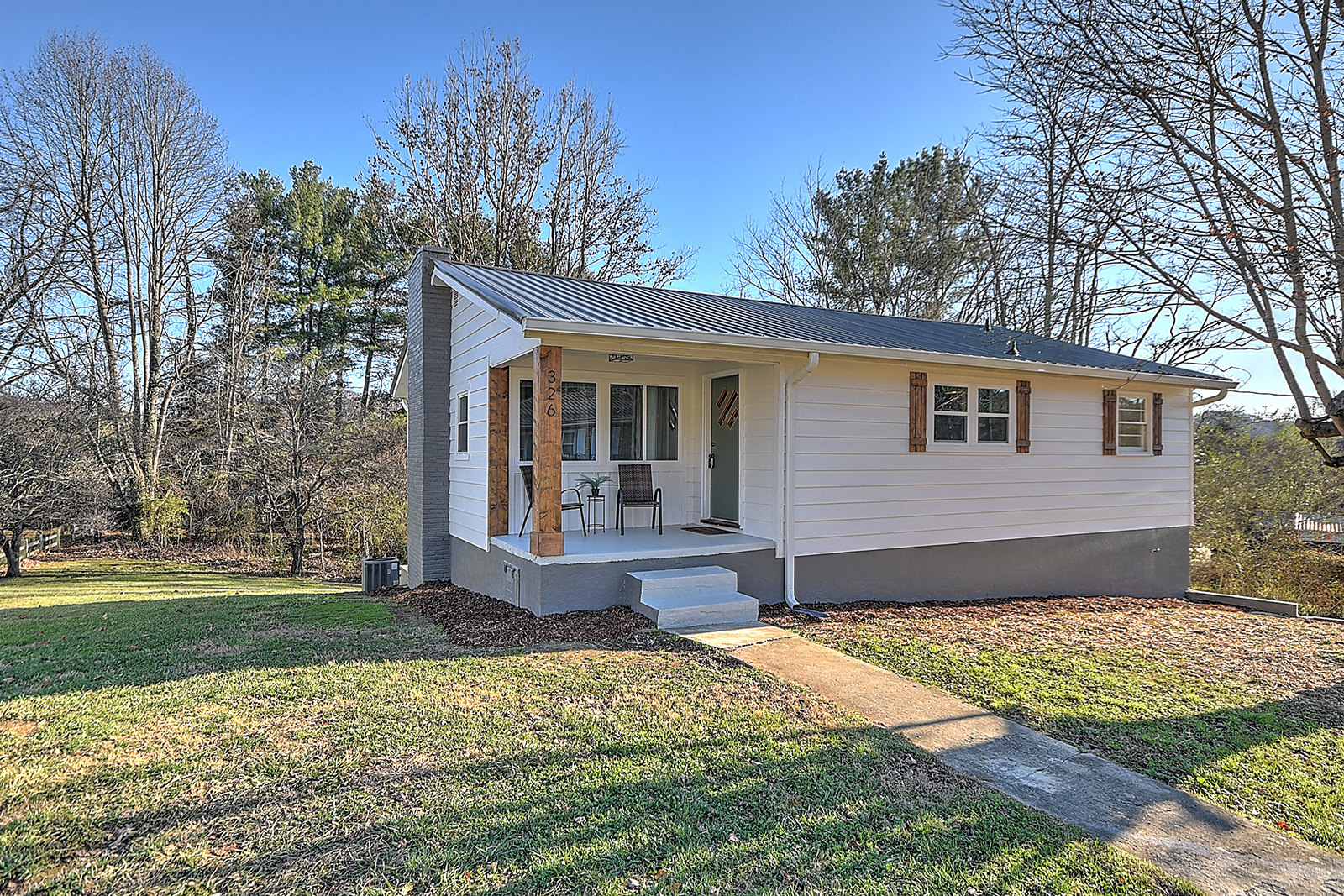 Renovated midcentury ranch! This charming home on a spacious lot has been fully renovated and is ready for you to move in and make it your own. From the cozy covered front porch to the back patio and everything in between, you'll find an abundance of updates that make it feel like new. Inside, you'll enjoy the open layout featuring a comfortable living room with a lovely fireplace and big windows. The professionally designed eat-in kitchen has been updated top to bottom with durable, high-quality cabinets complete with soft-close doors and drawers, new sleek countertops and stainless-steel appliances, and modern inset lighting. The full bathroom has been renovated with a new vanity, fixtures, lighting, and more, and the entire home has durable new flooring and fresh paint throughout. Major updates include a new metal roof for peace of mind for years to come, as well as new plumbing. Located just 8 minutes from the vibrant hub of the Pinnacle, you'll have easy access to diverse dining, shopping, and entertainment options. Outdoor enthusiasts will appreciate the proximity to the 2,200-acre Steele Creek Park, a mere 6-minute drive away. And the Birthplace of Country Music Museum and Paramount performing arts center are just 13 minutes away, providing opportunities to explore the area's rich musical heritage and artistic performances. This meticulously renovated ranch offers a serene retreat in a picturesque setting while providing convenient access to local amenities, making it an ideal place to call home. Schedule your showing today!
