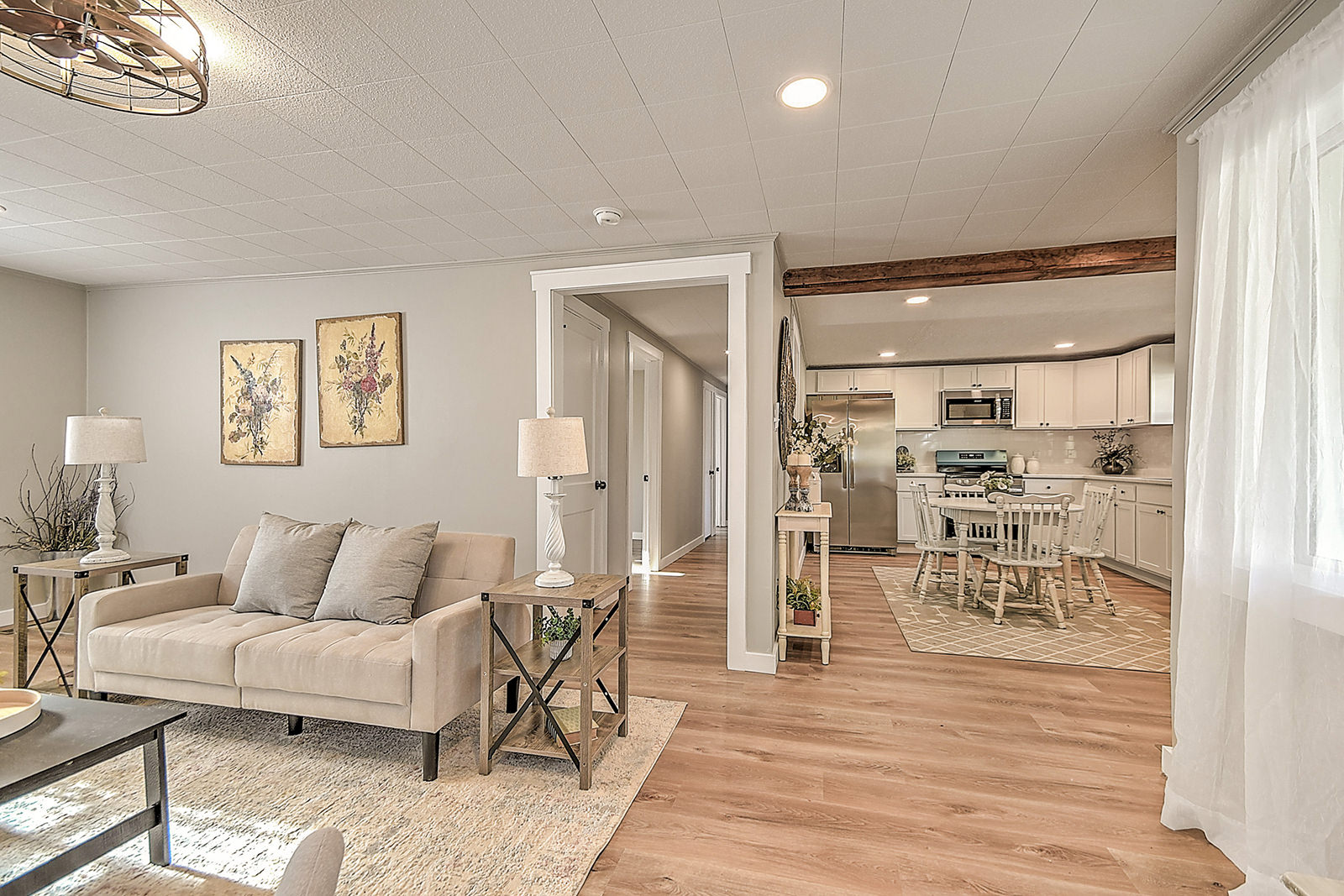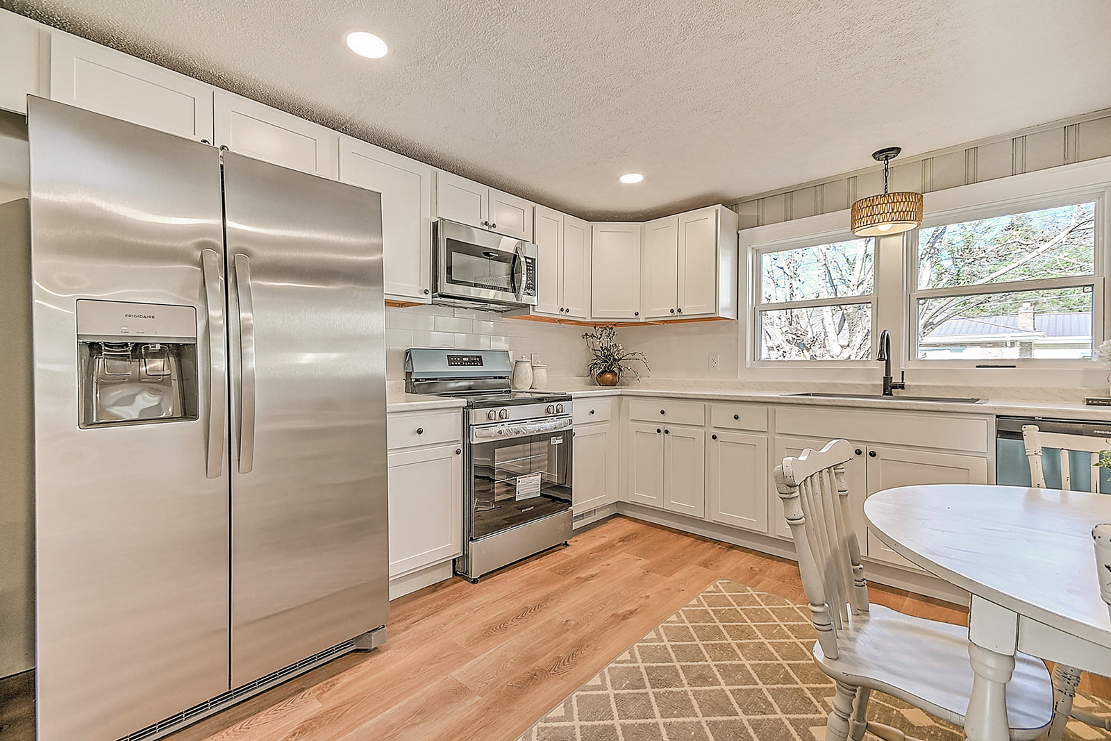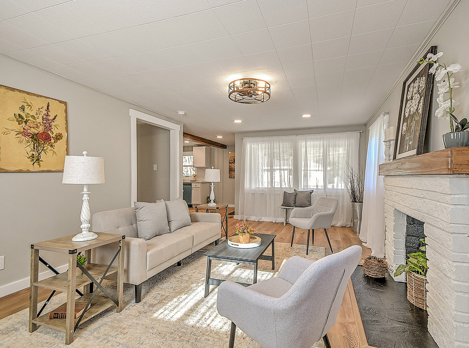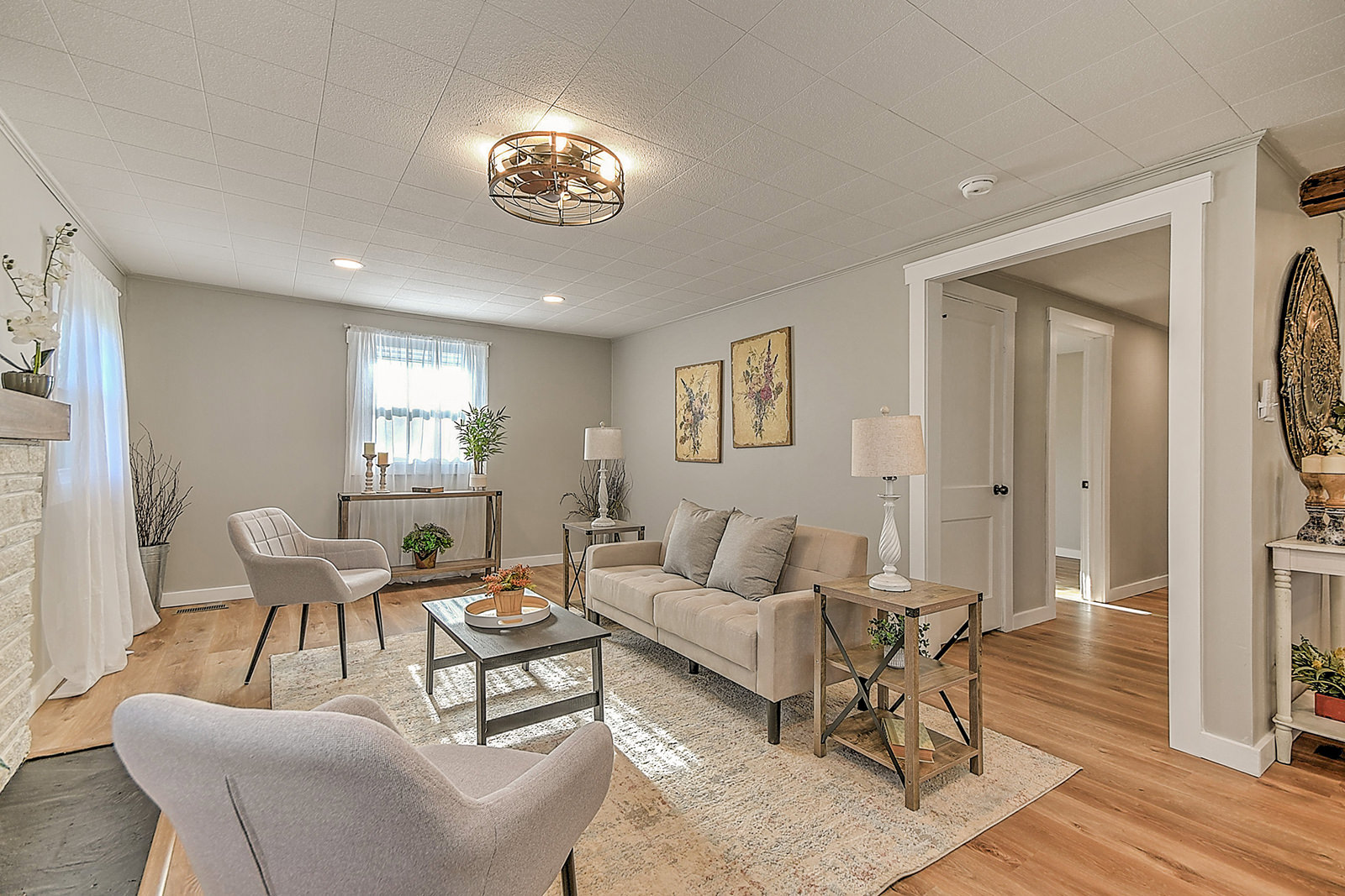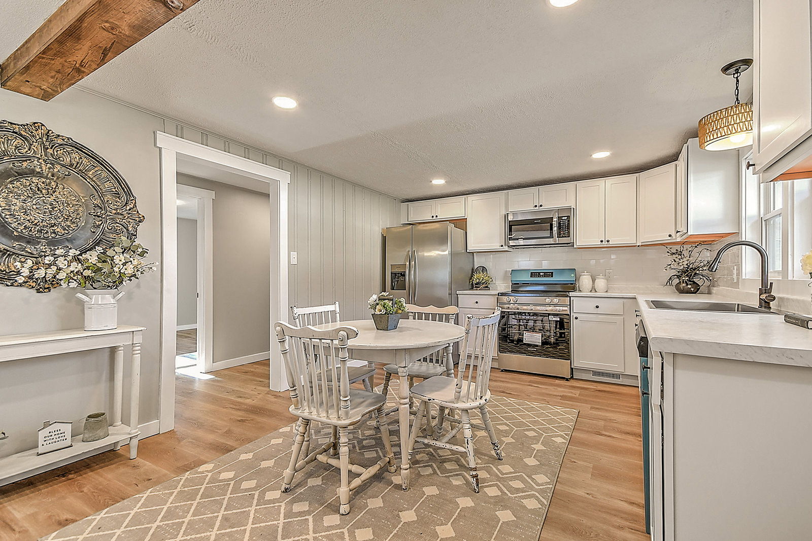 Renovated midcentury ranch! This charming home on a spacious lot has been fully renovated and is ready for you to move in and make it your own. From the cozy covered front porch to the back patio and everything in between, you'll find an abundance of updates that make it feel like new. Inside, you'll enjoy the open layout featuring a comfortable living room with a lovely fireplace and big windows. The professionally designed eat-in kitchen has been updated top to bottom with durable, high-quality cabinets complete with soft-close doors and drawers, new sleek countertops and stainless-steel appliances, and modern inset lighting. The full bathroom has been renovated with a new vanity, fixtures, lighting, and more, and the entire home has durable new flooring and fresh paint throughout. Major updates include a new metal roof for peace of mind for years to come, as well as new plumbing. Located just 8 minutes from the vibrant hub of the Pinnacle, you'll have easy access to diverse dining, shopping, and entertainment options. Outdoor enthusiasts will appreciate the proximity to the 2,200-acre Steele Creek Park, a mere 6-minute drive away. And the Birthplace of Country Music Museum and Paramount performing arts center are just 13 minutes away, providing opportunities to explore the area's rich musical heritage and artistic performances. This meticulously renovated ranch offers a serene retreat in a picturesque setting while providing convenient access to local amenities, making it an ideal place to call home. Schedule your showing today!