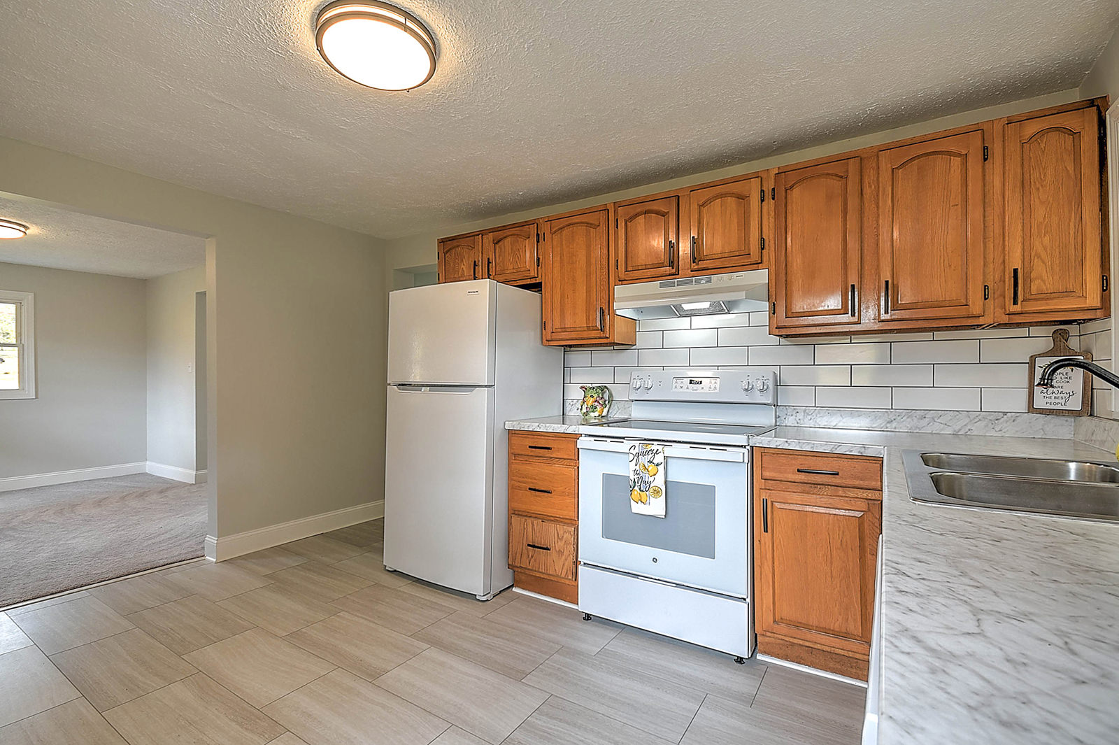 Step into serenity! Enjoy quiet, countryside living in this remodeled one-level ranch home. With peaceful views of the surrounding farmland and hillsides from every angle, this home will be your new favorite getaway. Located just an hour from both Johnson City and Sevierville, the home has been updated with new carpet in the bedrooms and living room and attractive new flooring in the kitchen and bathroom. The kitchen also features new countertops, appliances, fixtures, and subway tile backsplash, and offers plenty of cabinet space. An adjacent laundry room and utility room make it convenient to do daily chores, and extra cabinets provide space for cleaning supplies or pantry storage. This home sits on a half-acre lot and features a one-car garage and a covered front porch that's perfect for a pair of rocking chairs. An easy drive to the amenities of both Morristown and nearby White Pine, the home offers rural living at its best.