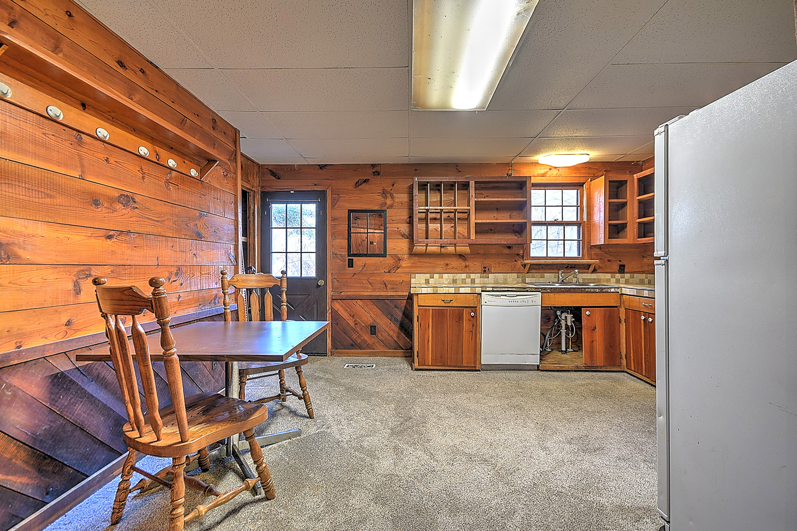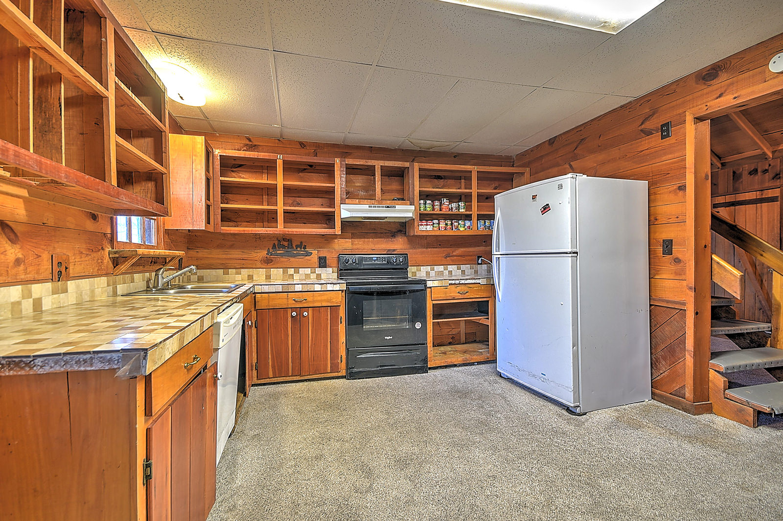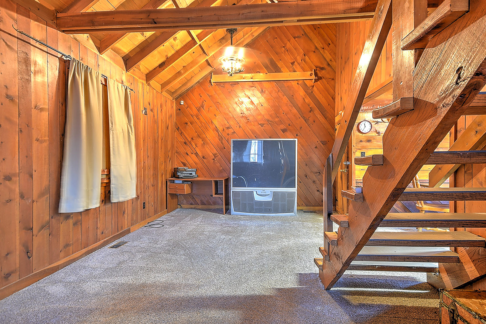 Cabin living, city convenience! If you've been dreaming of a cozy cabin in the country without giving up easy access to city amenities, this affordable home is the perfect retreat. From the wood-clad interior and exterior to the inviting front porch complete with a swing, every inch feels like a peaceful getaway. The interior features an open-concept layout with gorgeous vaulted ceilings in the living room, creating an airy space that still feels warm and rustic. The spacious kitchen and dining area offer plenty of room for cooking, gathering, and enjoying life at a slower pace. The main floor features a comfortable primary bedroom and a full bath, and upstairs you'll find two additional bedrooms plus a second bathroom for family or guests. The wide front porch and large deck overlooking the fenced back yard give you plenty of space for relaxing and enjoying the outdoors. And with the convenient drive-under garage, you'll have covered parking and lots of storage space. Centrally located for easy access to all the shopping, dining, and entertainment options of Memorial Boulevard and Stone Drive, the home is also convenient to lots of outdoor activities like hiking and golf, and local schools are located within a 15-minute drive. With rustic charm, modern comforts, and an inviting atmosphere, this cabin-style home offers the best of both worlds at a price that's hard to beat. Schedule your showing today!