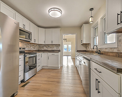 Roomy, renovated, and ready to move in! This beautifully renovated brick home in the Sullivan Gardens community offers a blend of space, comfort, and modern updates, all set on a generous 1.28-acre lot with peaceful mountain views. From the moment you arrive, you'll appreciate the inviting covered front porch and the private back patio, ideal for relaxing or hosting friends and family. Inside, you'll discover a home that feels truly refreshed from top to bottom. The front living room welcomes you in, while a large family room at the back of the home provides even more space to spread out. The stunning, fully updated kitchen features a breakfast nook along with all-new stainless-steel appliances, abundant new cabinetry, butcher block countertops, a lovely new backsplash, and stylish new fixtures. Just off the kitchen is a formal dining room that's ideal for everyday meals as well as special get-togethers. A spacious laundry room gives you plenty of room to work, complete with cabinets and convenient countertop space. The three bedrooms have all been updated with new carpet, and both full bathrooms have been completely transformed with new fixtures and finishes. Throughout the home, you'll find thoughtful updates including new hardwood-style flooring, contemporary light fixtures, new doors, and fresh paint that brings a bright, modern feel to every room. Outside, the large detached garage offers extensive storage space, and the adjacent carport adds even more convenience. All of this is just a short drive from Bays Mountain Park, the YMCA and Kingsport Aquatic Center, and Cattails Golf Course at Meadowview, with easy access to I-26. This home has it all; schedule your showing today!